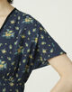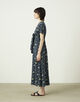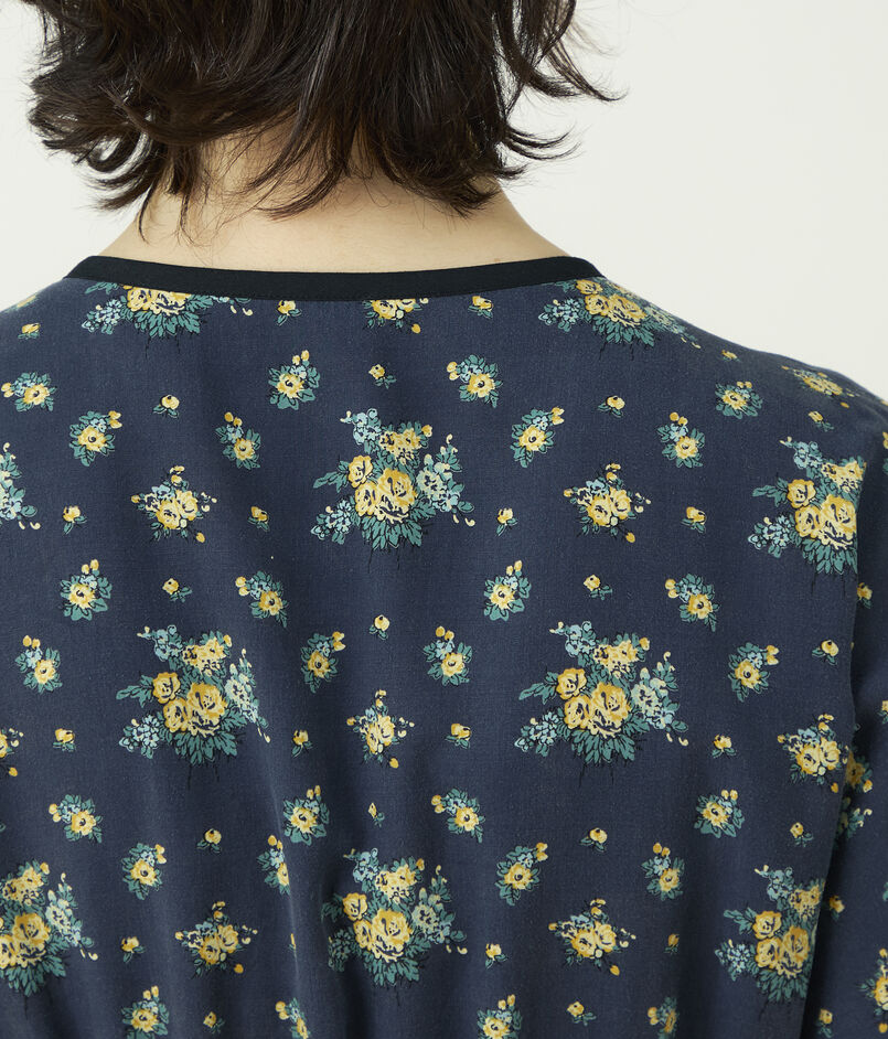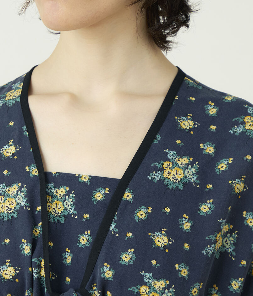 襟ぐりに配した無地のパイピングでほど良くアクセントをつけています。