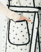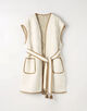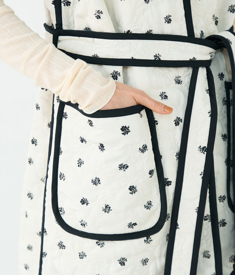 リバーシブル仕様なので着こなしに合わせて雰囲気を変えたり、共布で作った付属のベルトでウエストマークするのもおすすめ。