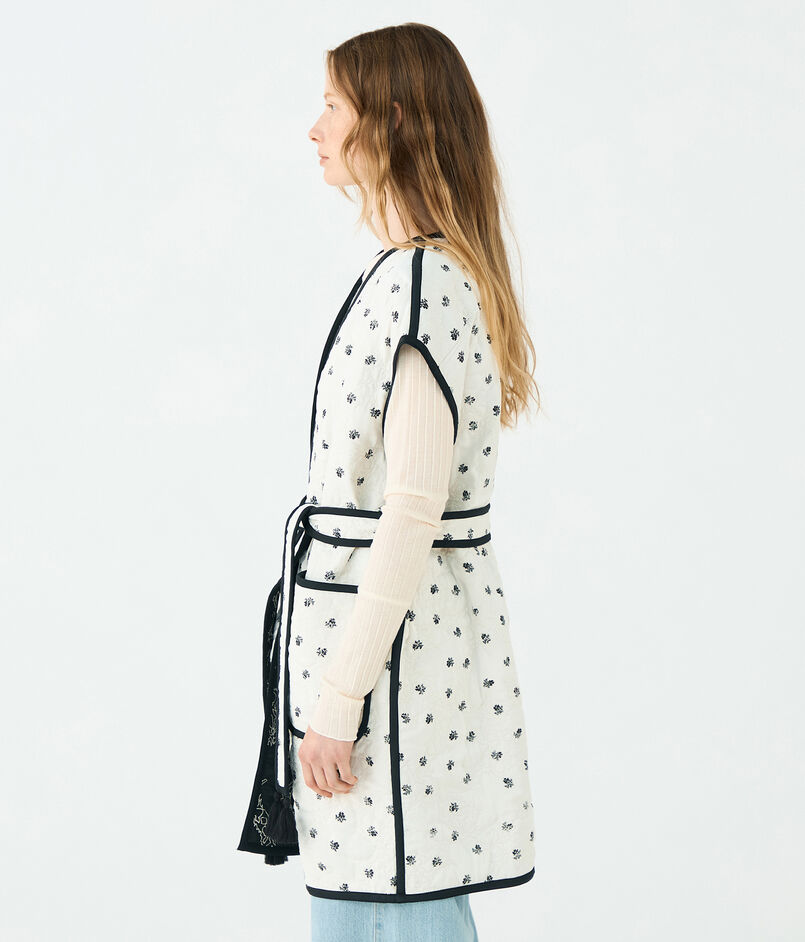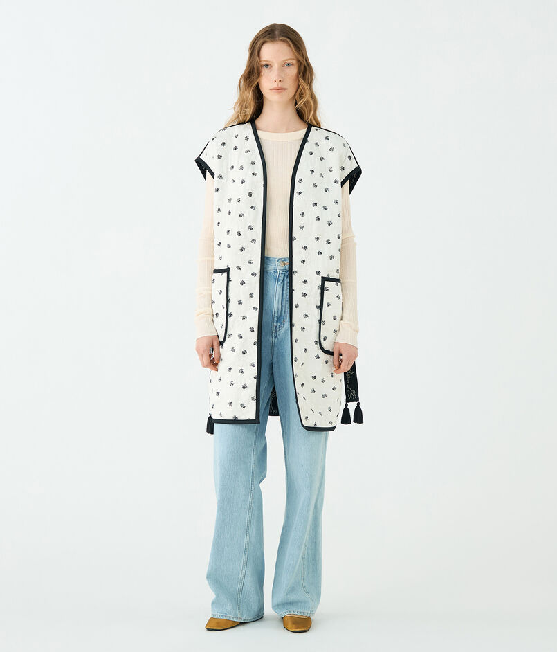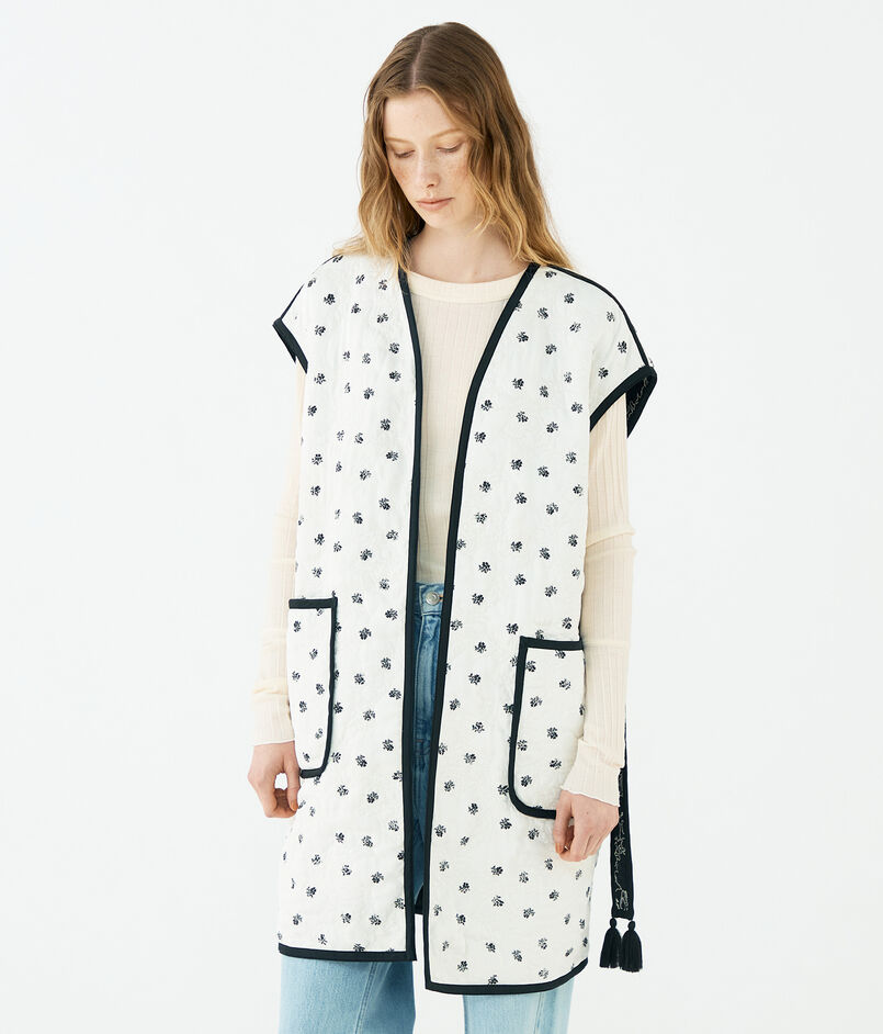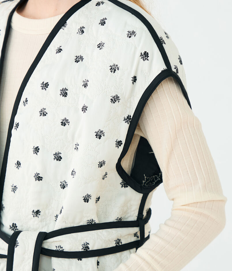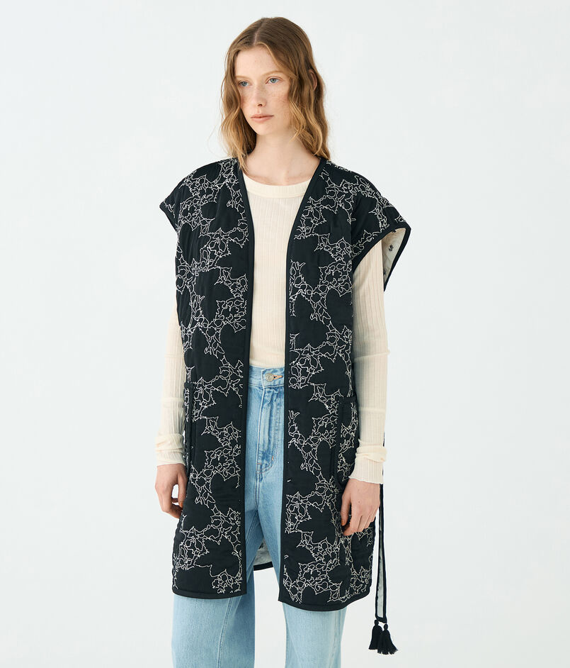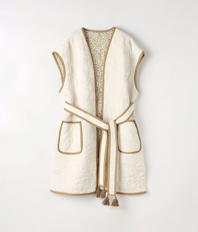 〈SOULEIADO〉定番のビュイソン柄をキルトステッチで表現したジレ。