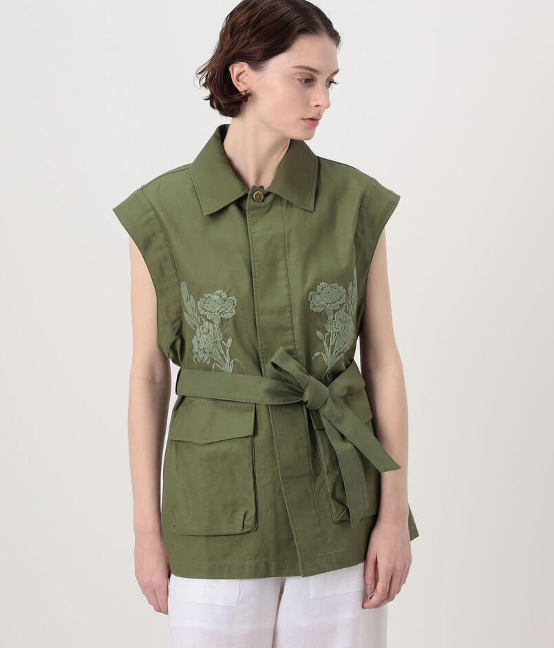付属のベルトできゅっとウエストマークするだけでなく、アームホール内側にファスナーを取り付けているので着こなしや気分に合わせて袖を外してベストとしても着用いただけます。