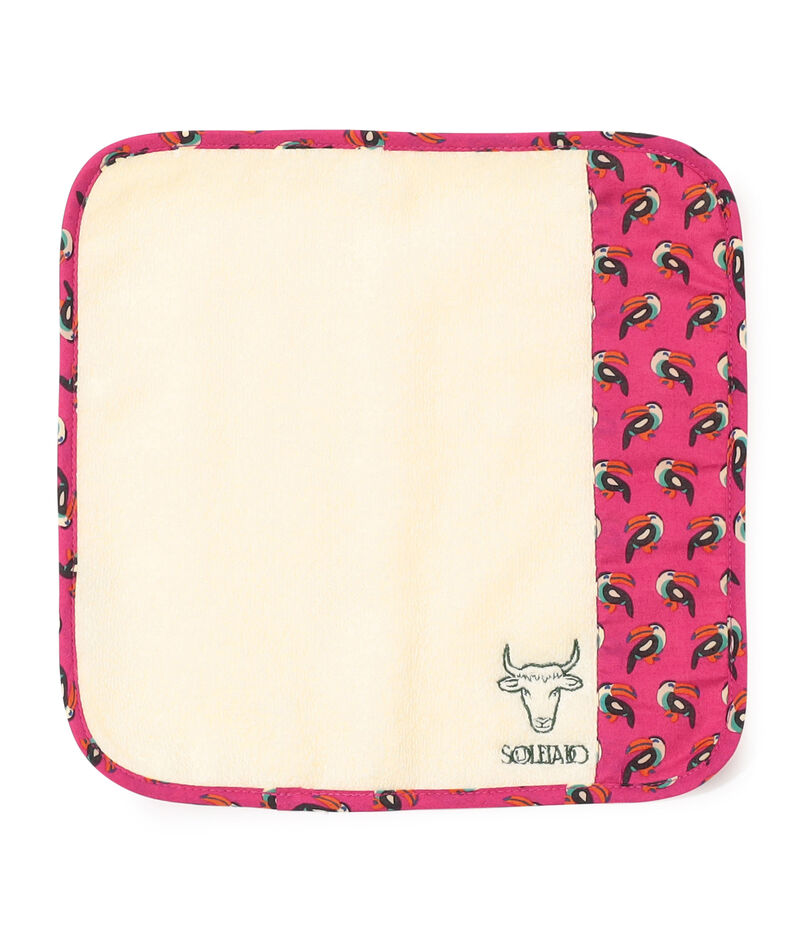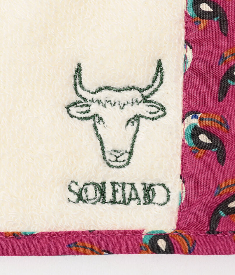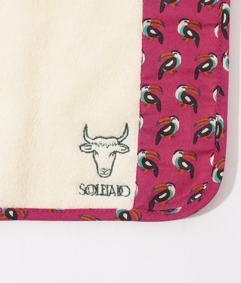 〈SOULEIADO〉オリジナルのプリントファブリックをコンビ使いしたミニタオル。
