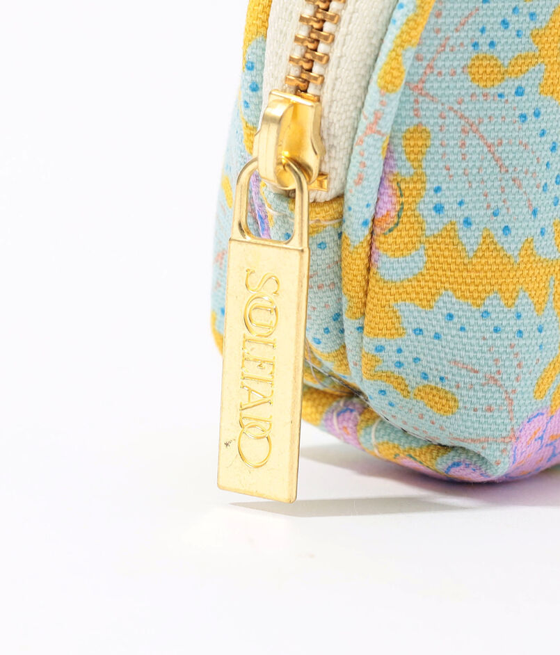 〈SOULEIADO〉オリジナルの鮮やかなプリントが目を惹く、コットンオックス素材のポーチ。