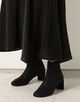ヒールのラインが特徴的で、丸みのあるトゥに対してモダンな印象に。