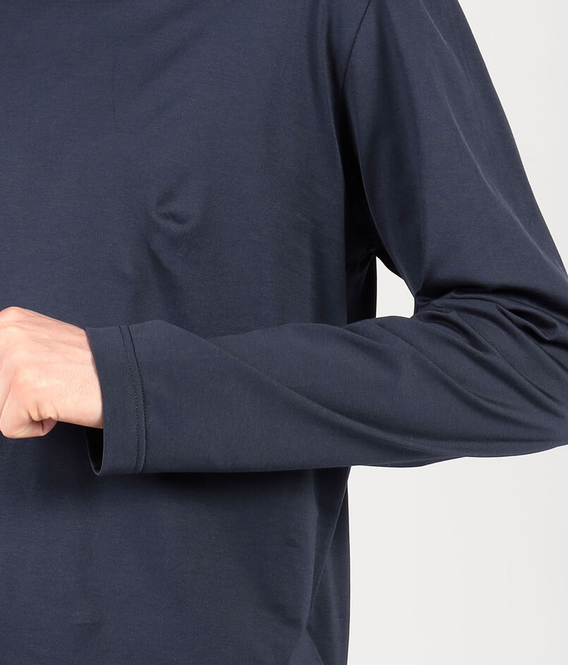 季節の変わり目のレイヤードに重宝し、ニットやジャケット、オックスフォードシャツのインナーとしても幅広く活躍します。