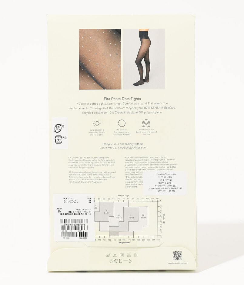 世界初のリサイクル素材を使用した耐裂性タイツなどサスティナブルなだけでなく、ファッション性も兼ね備えたレッグウェアを提案している。