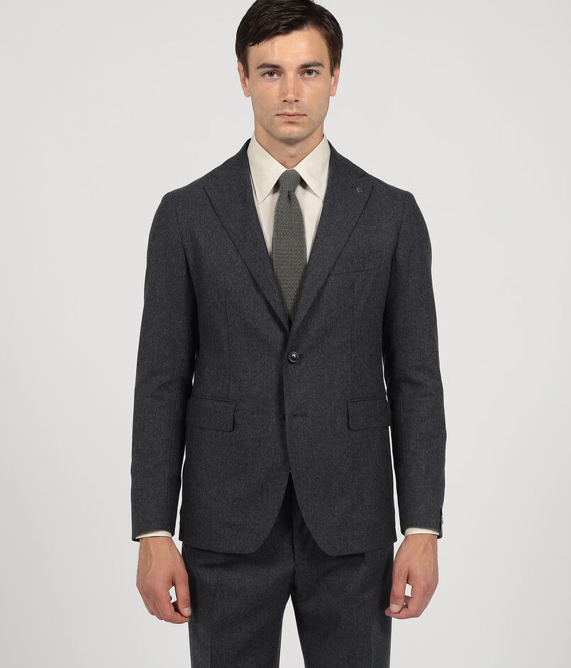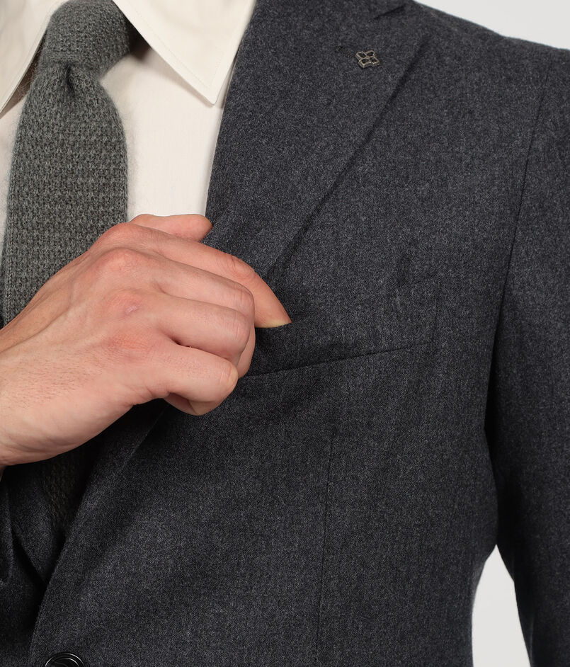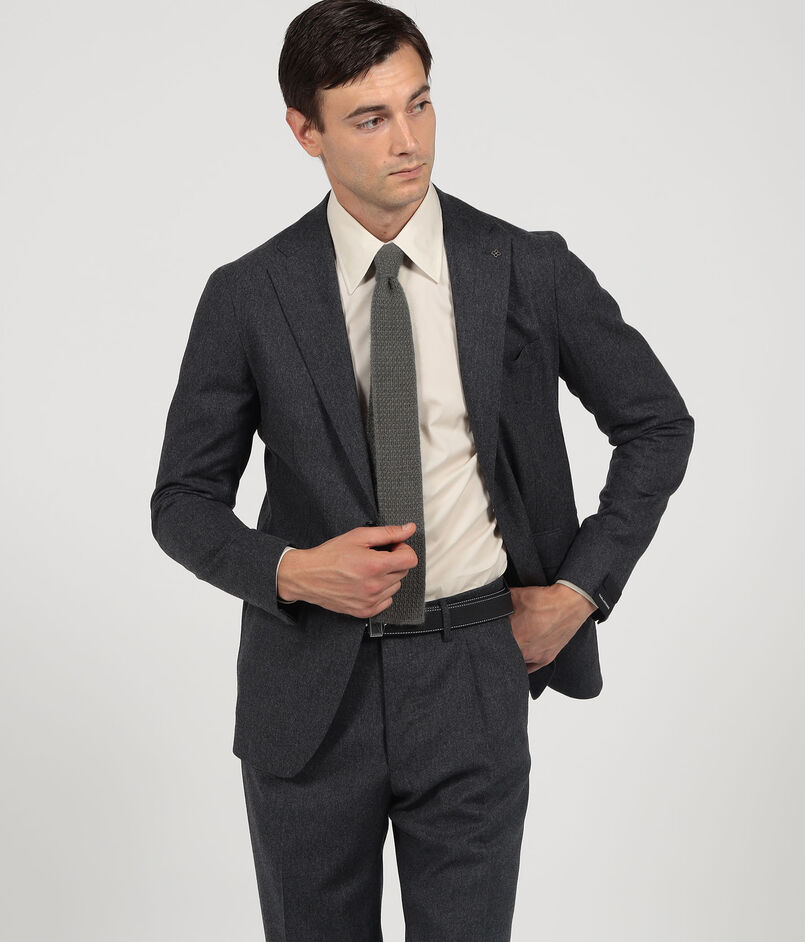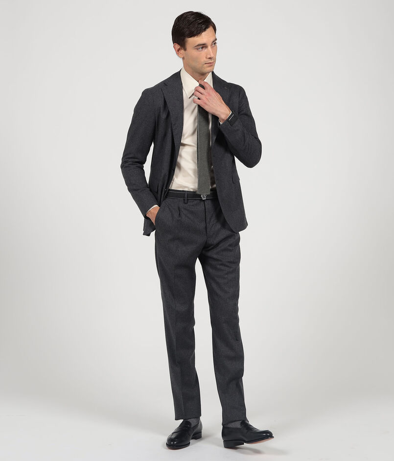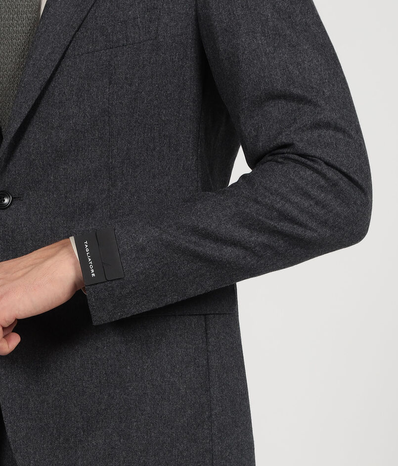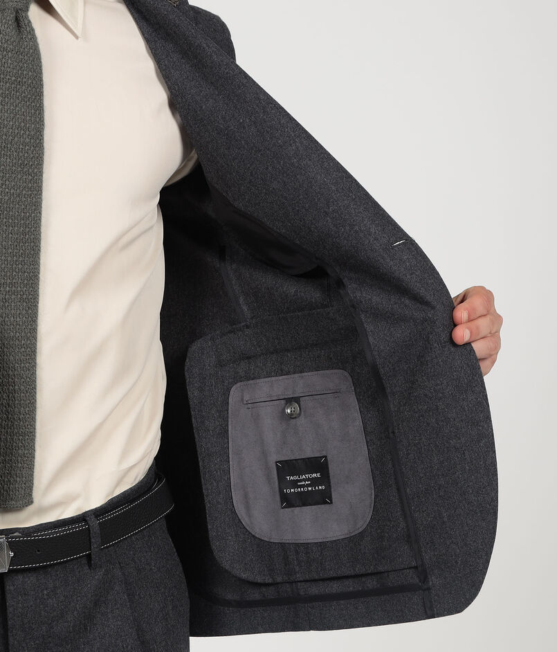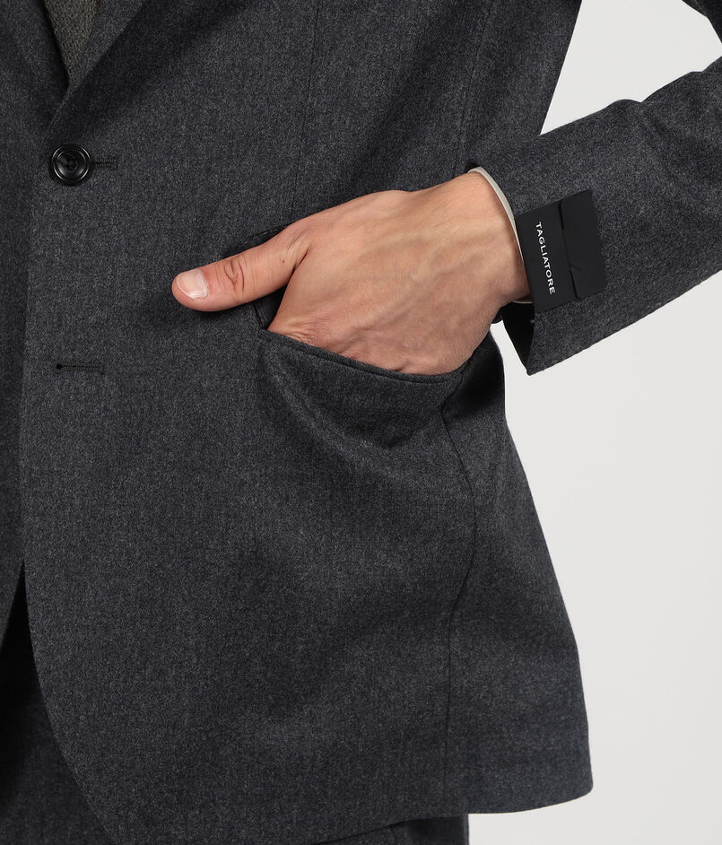 伊〈TAGLIATORE(タリアトーレ)〉に別注したアンコン仕立てのスーツ。
