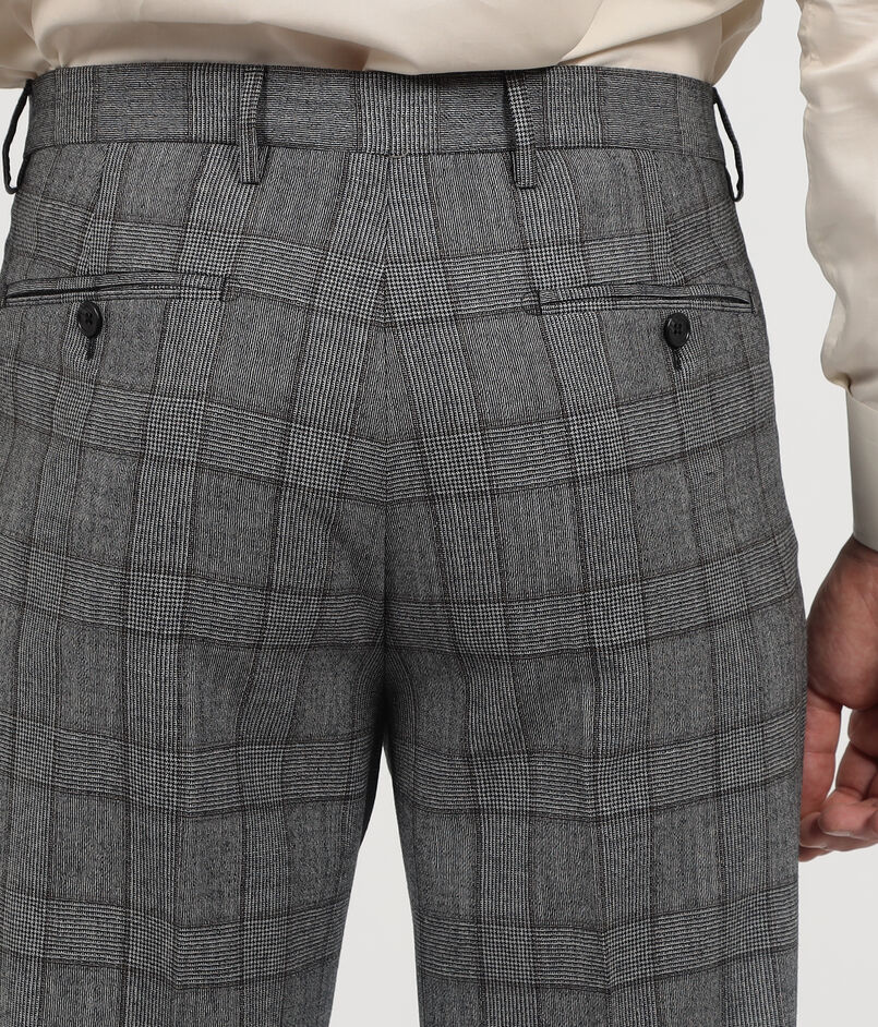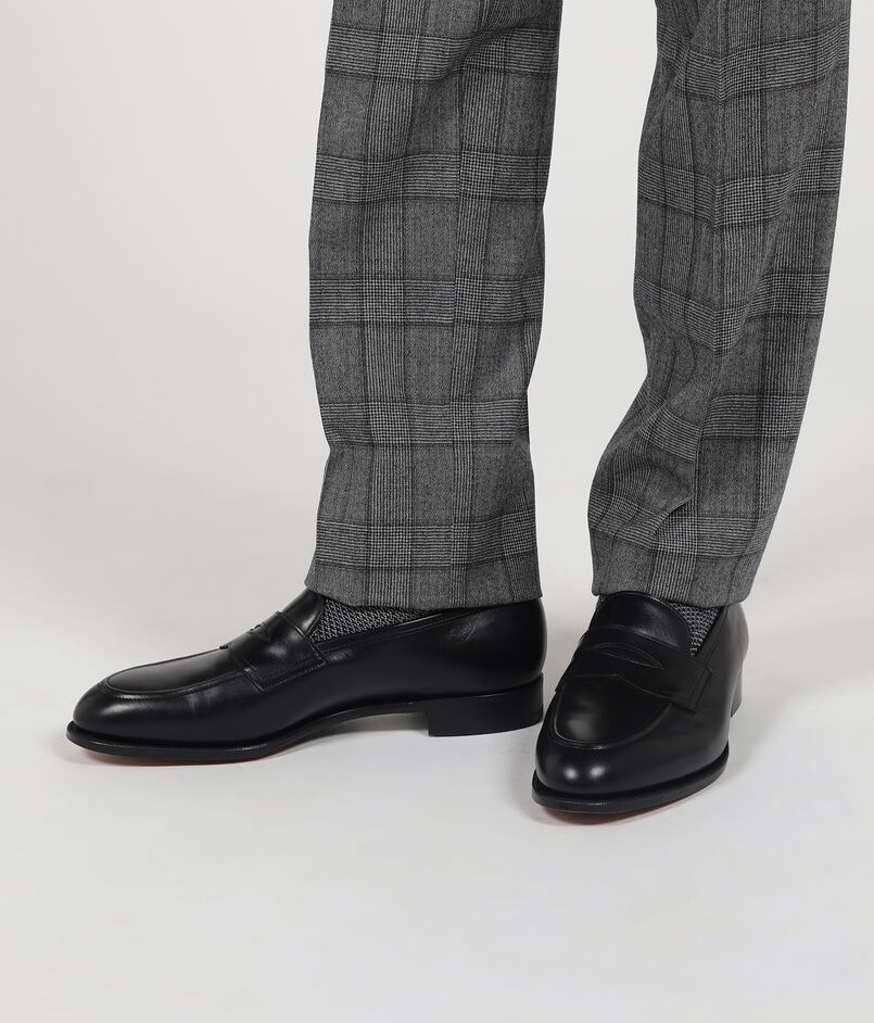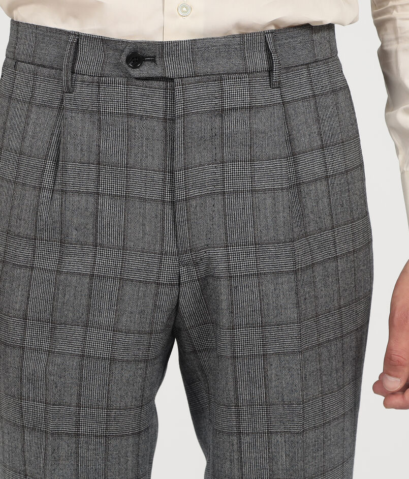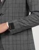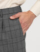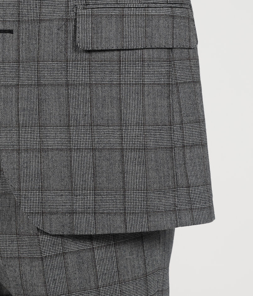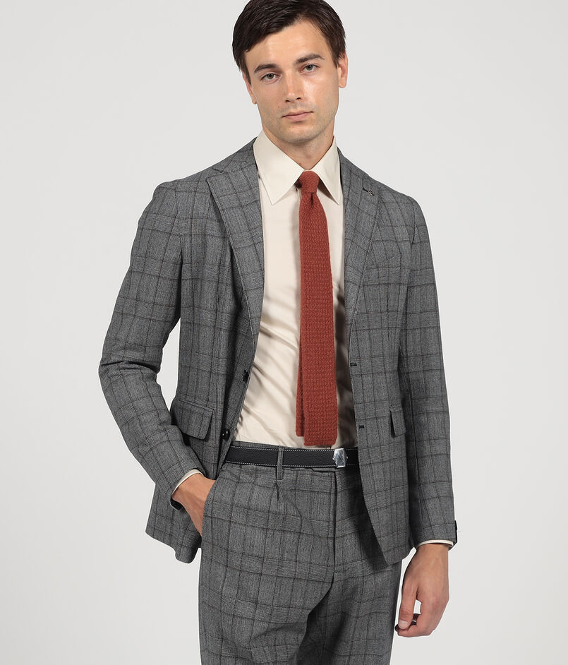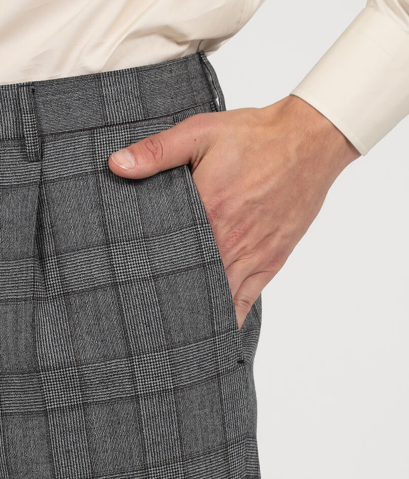シックな配色の大柄のチェックは、タイドアップだけでなく、ニットのスタイリングもおすすめです。