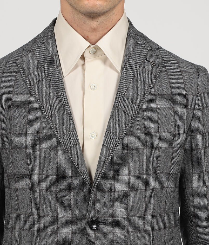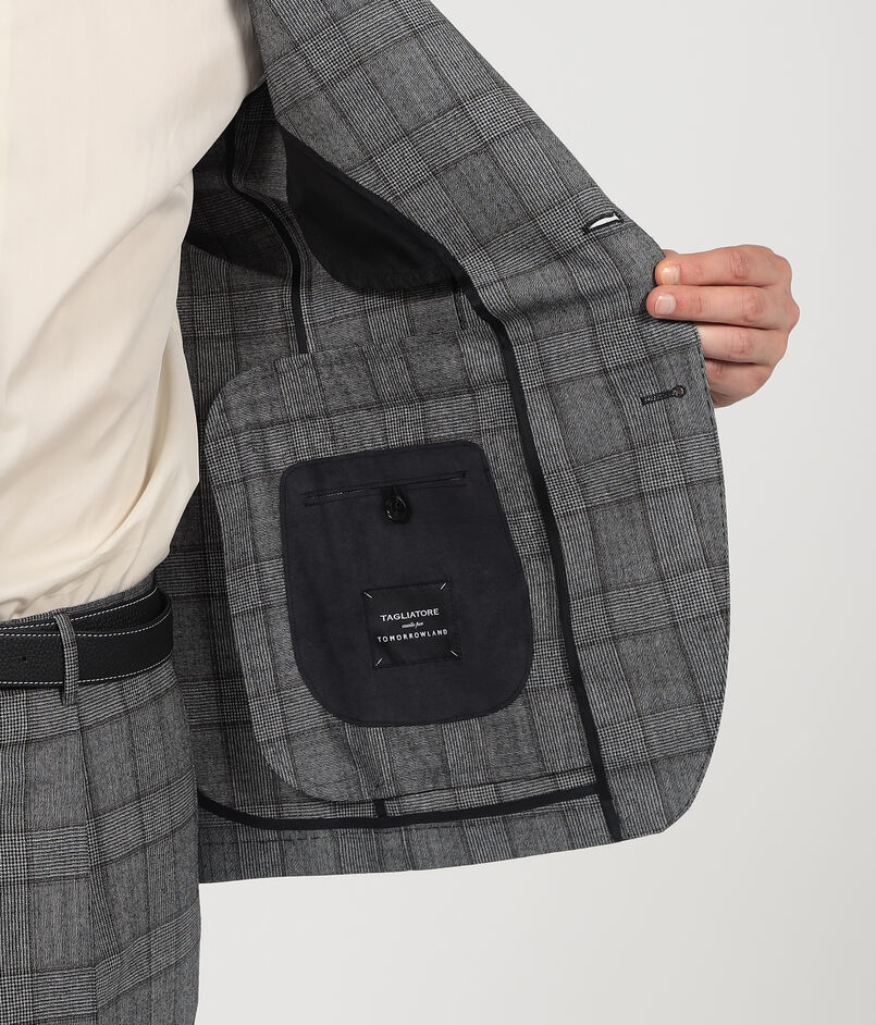 伊〈TAGLIATORE(タリアトーレ)〉に別注したアンコン仕立てのスーツ。