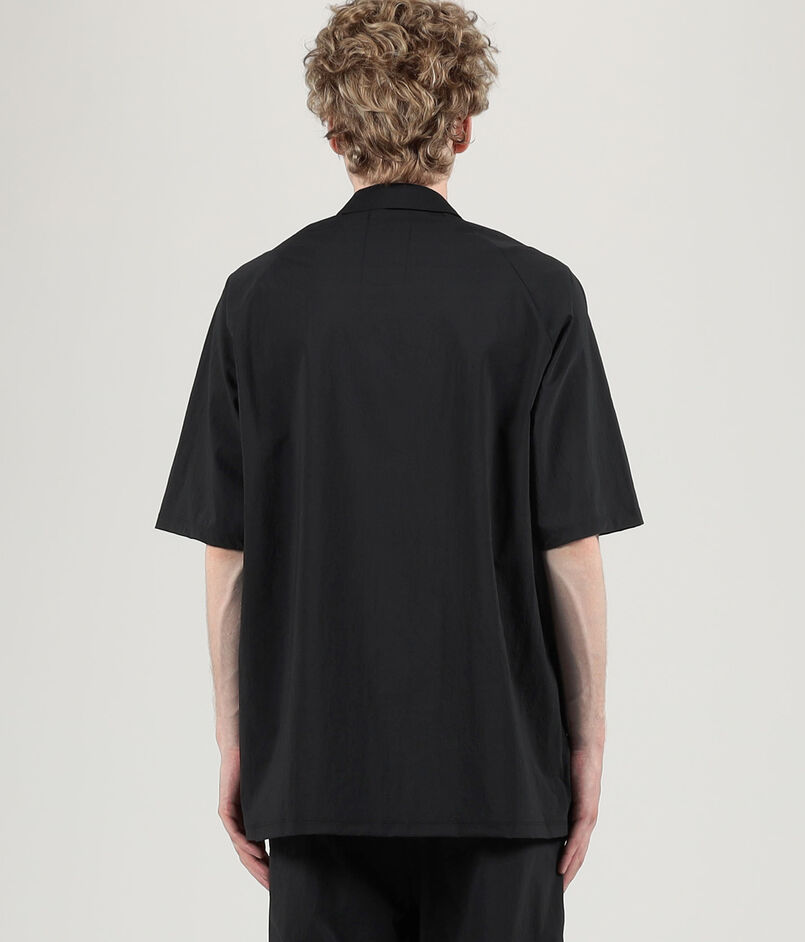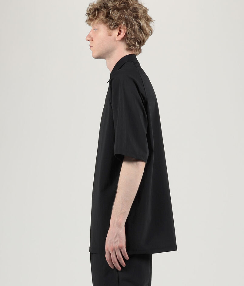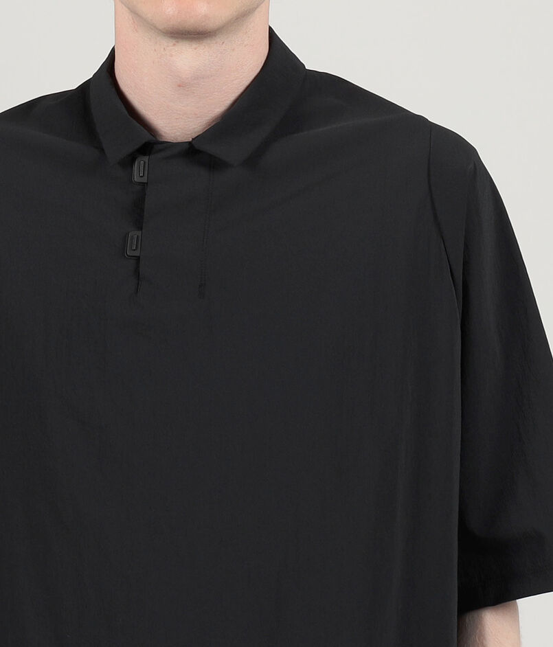 身幅や袖幅にゆとりを持たせたシルエット。襟元にはカプセルスナップボタンを採用。