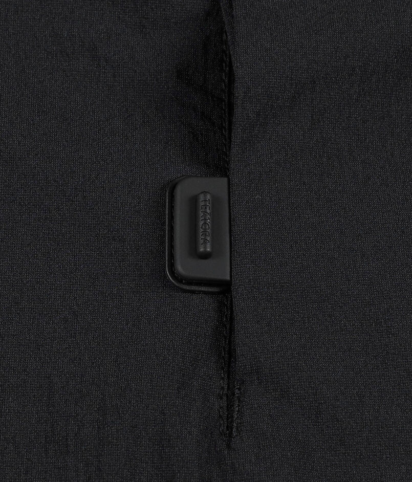 ショルダー部分の特殊な切り替えにより肩周りの可動域を広げ快適性を高めると共に、〈TEATORA〉独自のシルエットを表現。