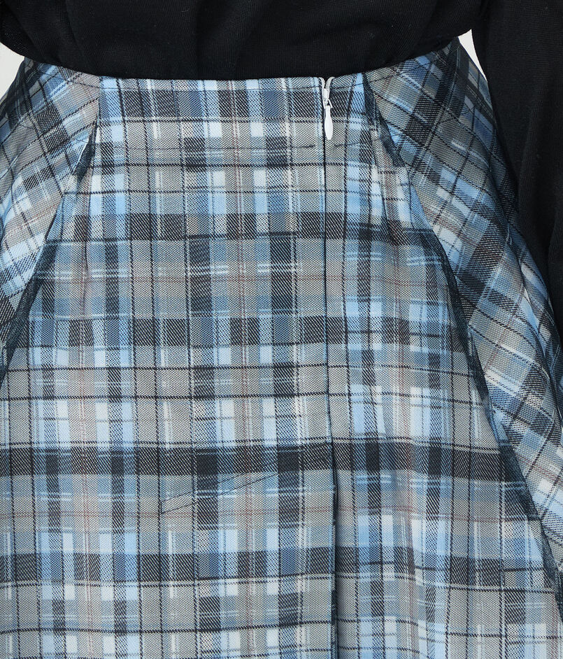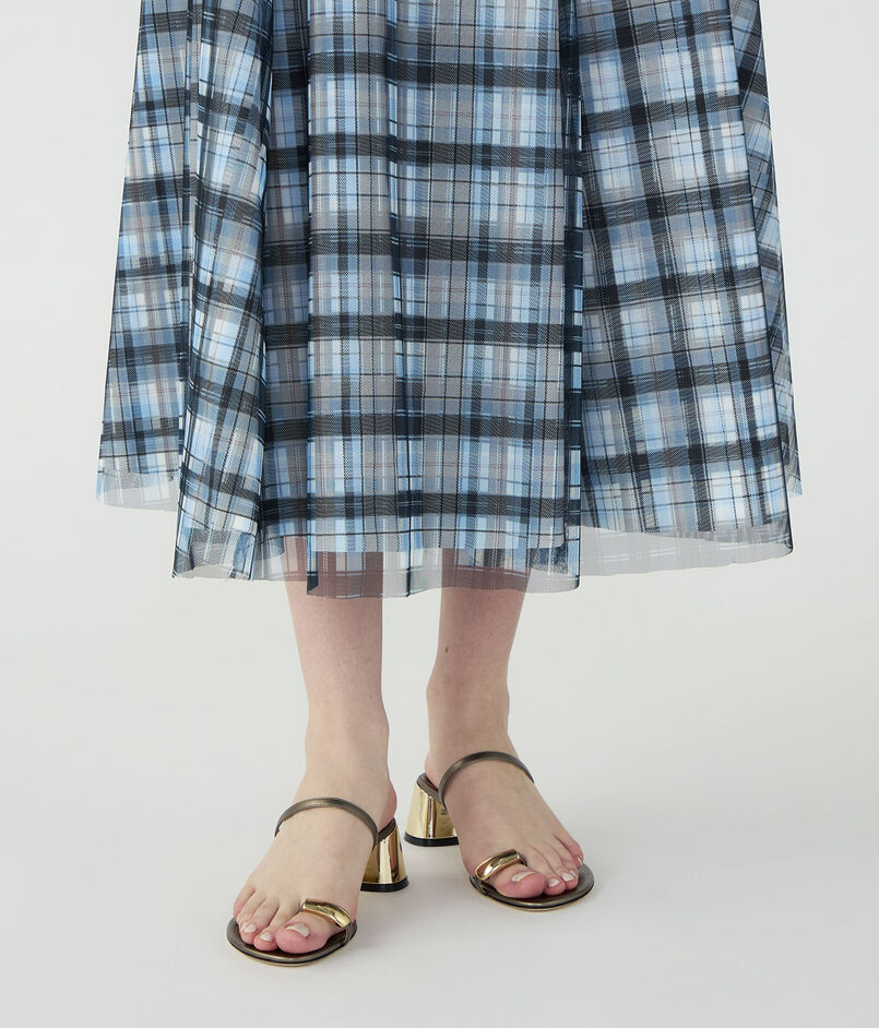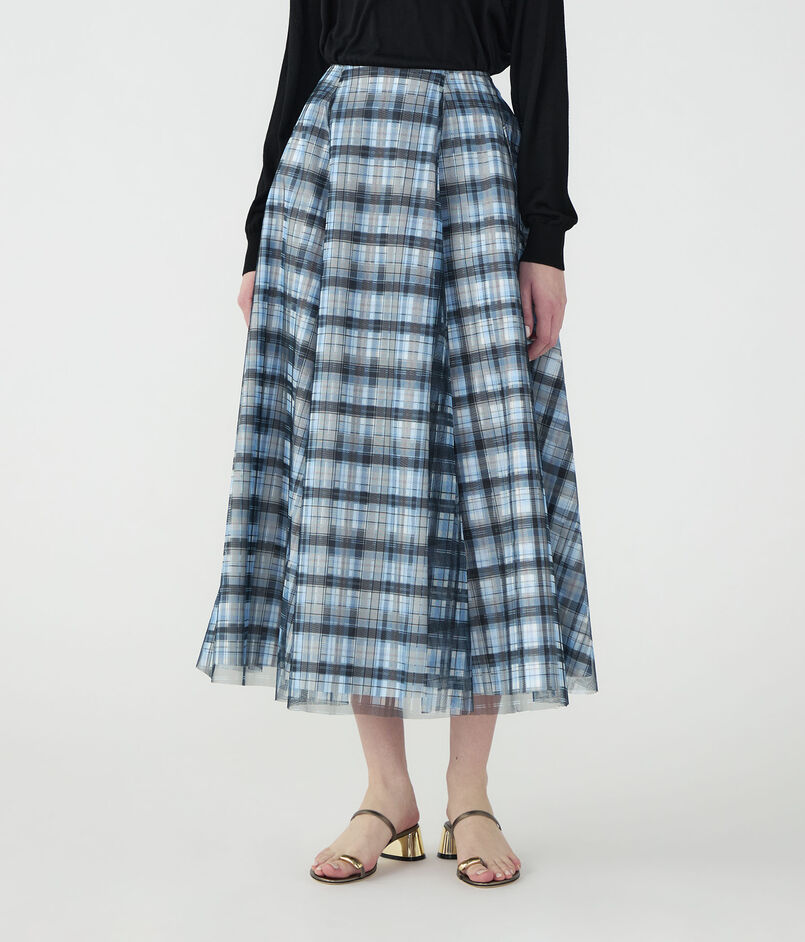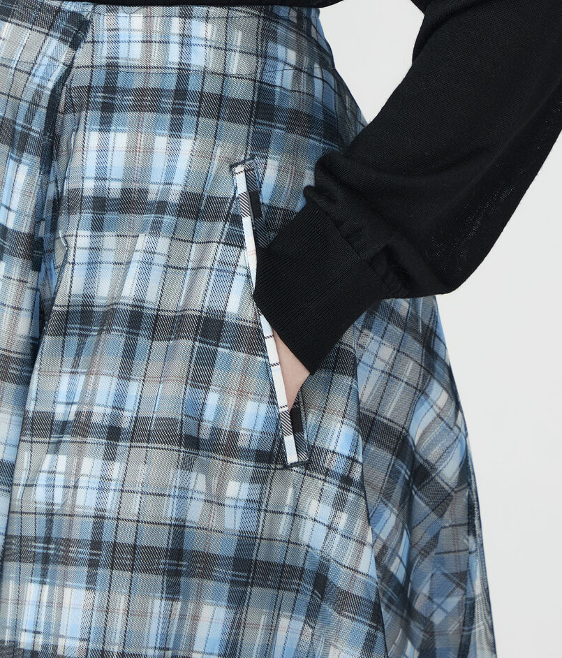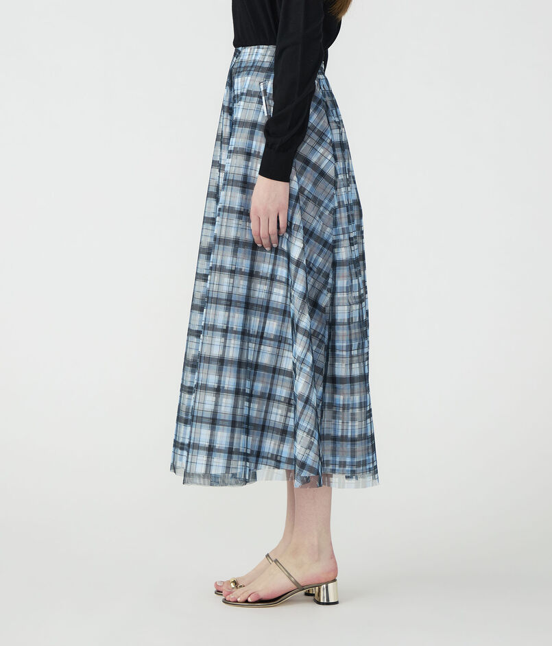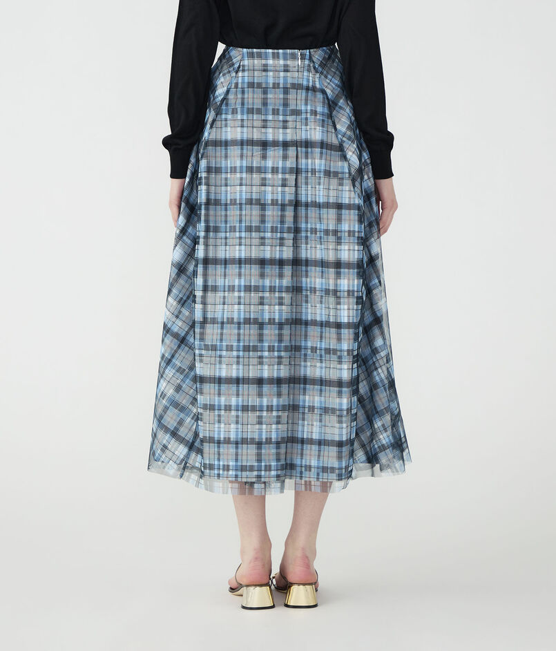 ドラマティックでロマンティックな余韻を残すシルエットに、軽やかなチェックのパターンが映えるスカート。