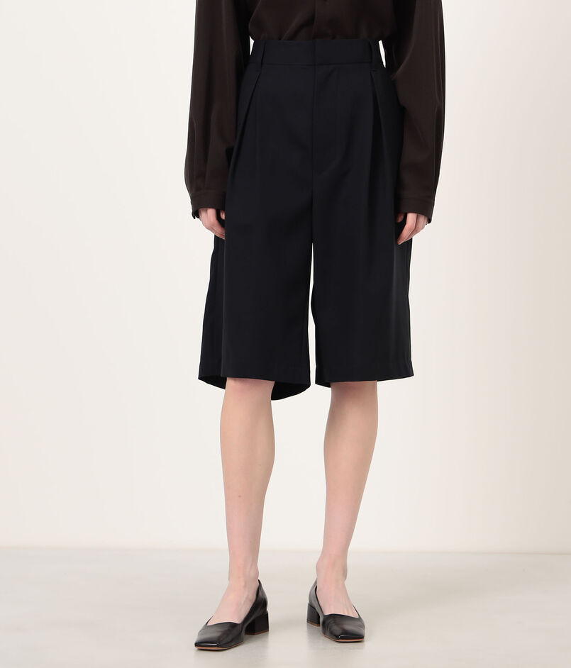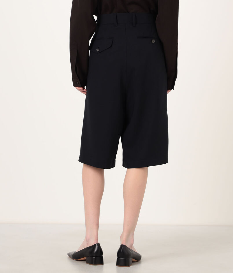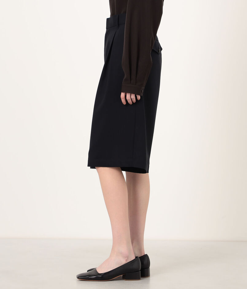 コンパクトなウエストから腰回りにボリュームを持たせたシルエットと、膝にかかる絶妙な丈バランスが軽やかかつ美しいシルエットを生み出す、大人の女性にこそ履いてほしいショートパンツです。