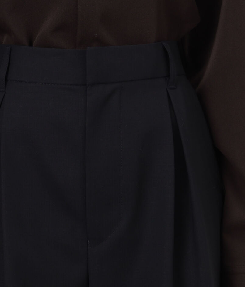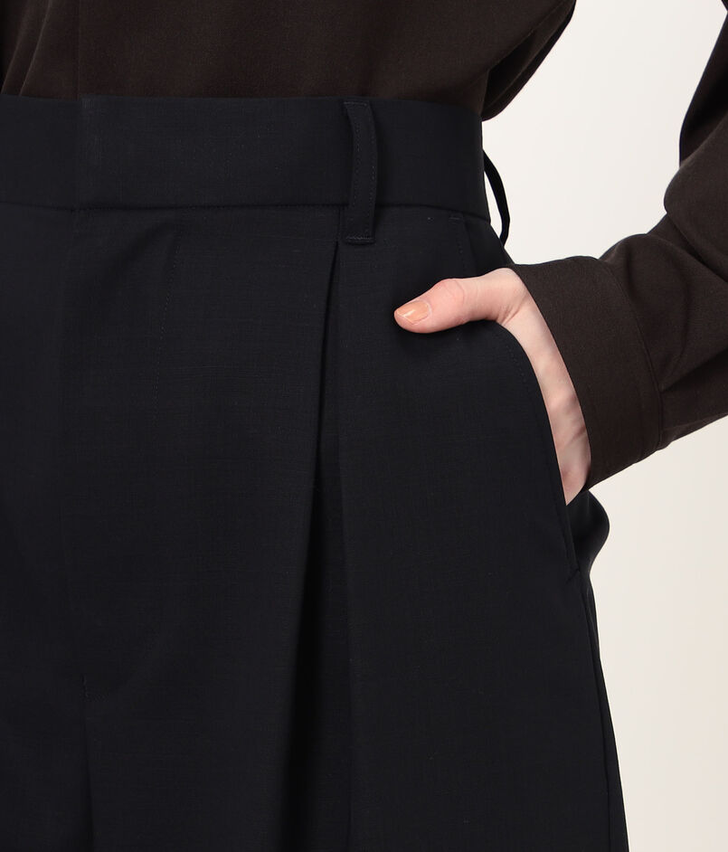 内と外に向かい合うように施された深いタックが特徴的なショーツは、ブランド定番人気のトラウザーパンツを今季らしいバランスで仕上げた、〈LAND OF TOMORROW〉だけのエクスクルーシヴアイテム。