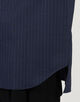 昔のヨーロッパのドレスシャツに見られるような、すっきりとしたノーカラーの襟元が特徴。前後で異なる裾のデザインが、さりげないアクセントになっています。