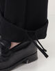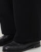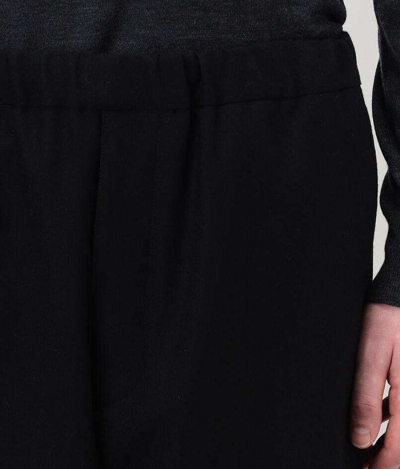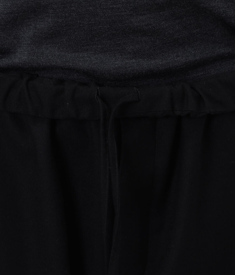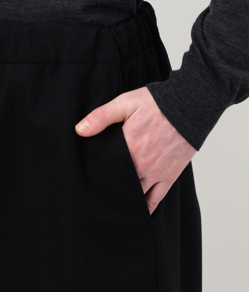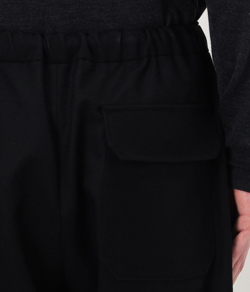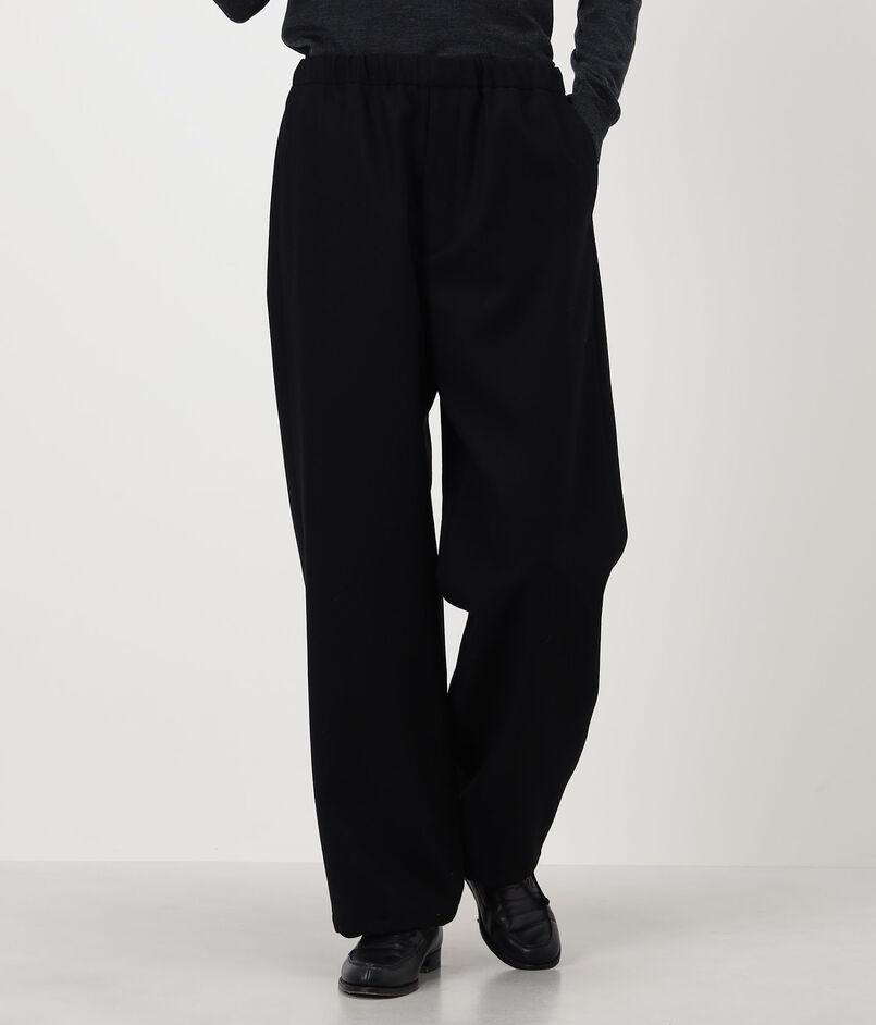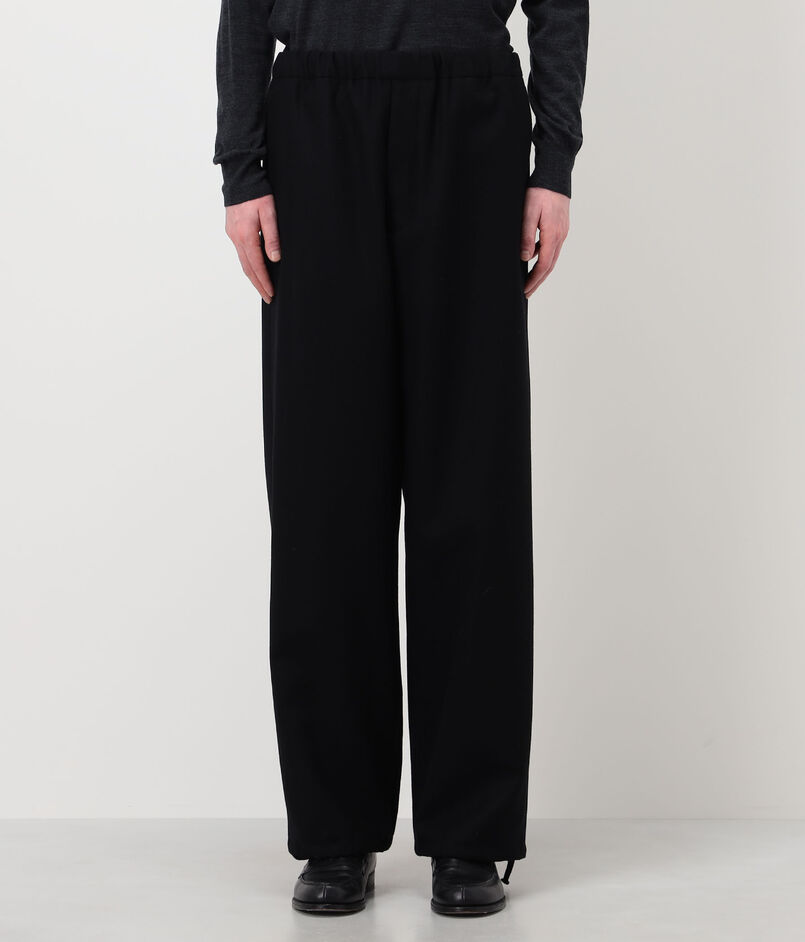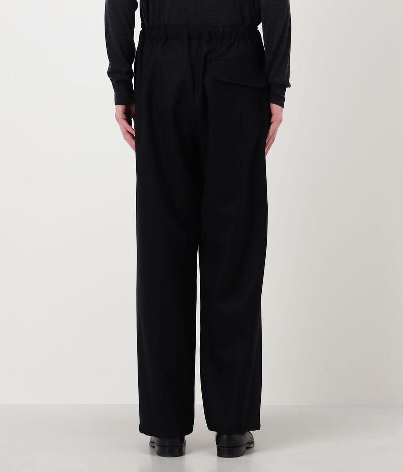ミリタリーのオーバーパンツを背景に持つ、ボリューム感のあるワイドシルエットが特徴です。ウエストと裾に配されたドローコードを絞ることで、その日の気分やシューズに合わせたドラマチックなシルエットの変化を楽しむことができます。武骨な軍パンの意匠をベースにしながらも、同ブランドらしい洗練されたパターンと上質な素材使いによって、野暮ったさを削ぎ落としたモダンな一本に仕上がっています。