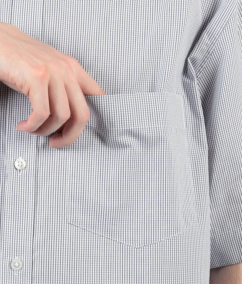 今回の別注モデルは、ブランドとともに型から制作した特別なコレクション。一枚で着たときに最も美しく見えるよう、着丈やサイズバランスに徹底的にこだわったショートスリーブのレギュラーカラーシャツ。極上の着心地と、洗練されたシルエットを併せ持つ、特別な一着です。