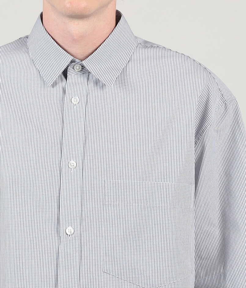 スイスの老舗生地メーカー、〈ALUMO(アルモ)〉社の看板クオリティ『SUPLALUXE』を使用したシャツ。極細番手120/2のコットンポプリンは、シルクのような滑らかさと光沢が特徴です。ALUMO独自の「ALUMO FINISH」と呼ばれる高度な仕上げが、この唯一無二の風合いを生み出しています。