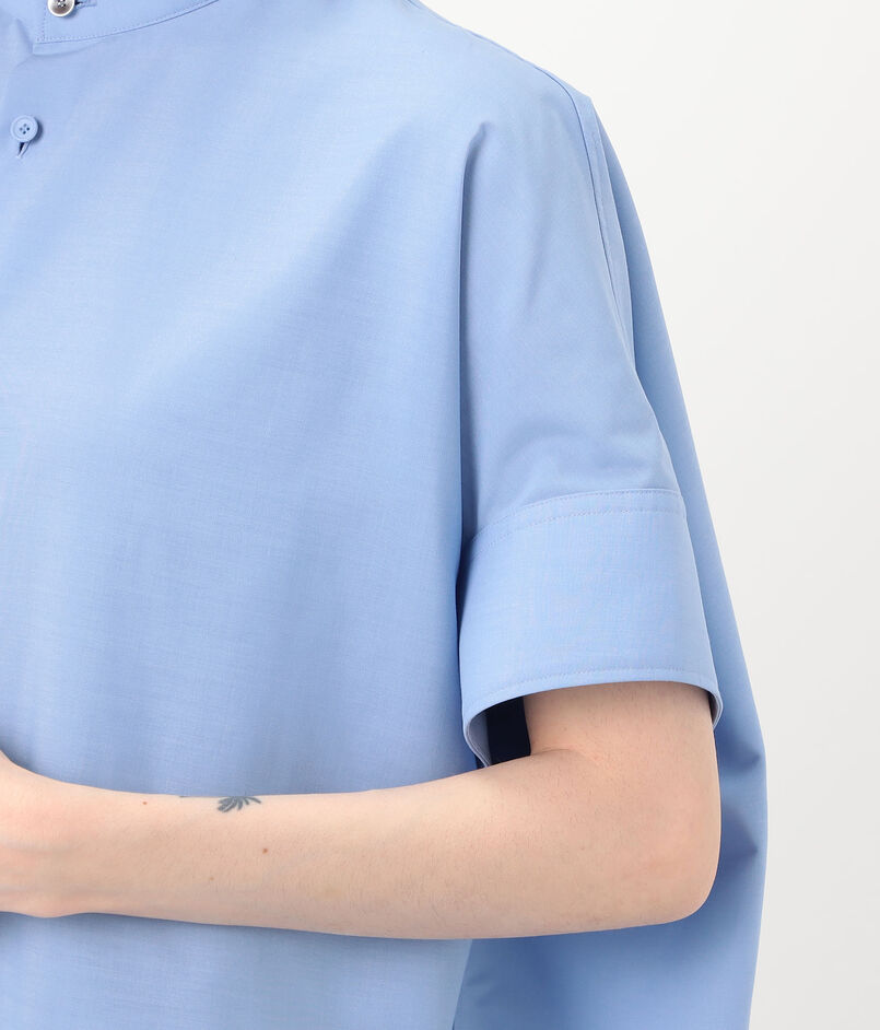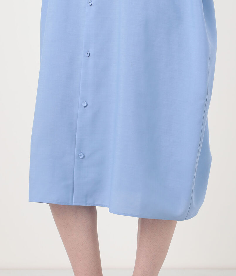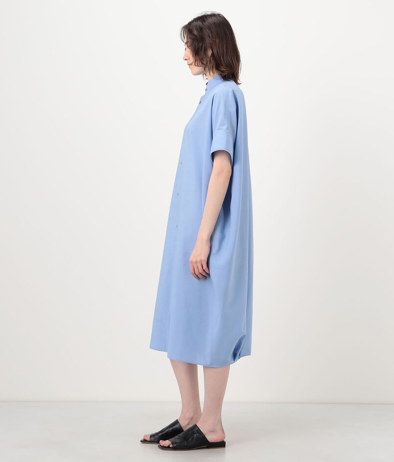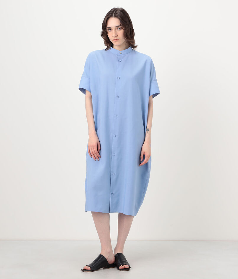 着心地の良さと上品なフォルムを両立した、バンドカラーのシャツドレス。