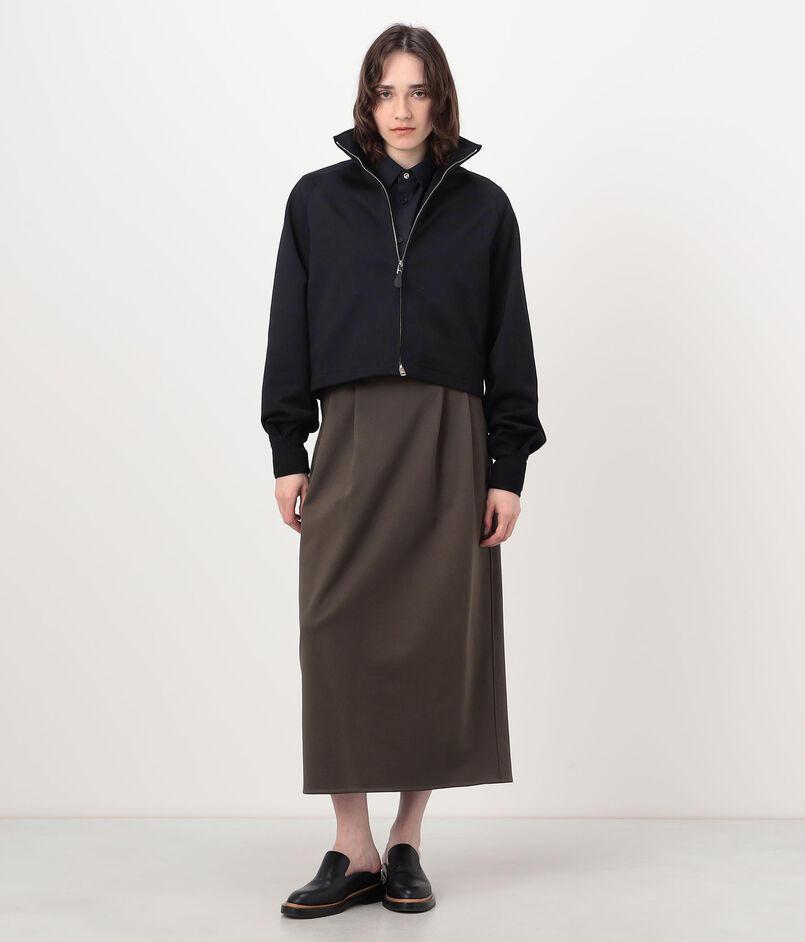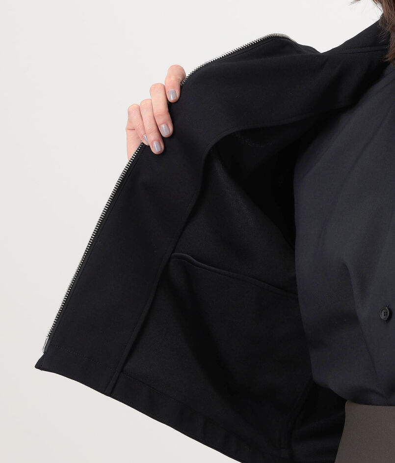 身頃バックサイドのタックが、様々なボトムスと好相性のショート丈に最適な、立体的なバランスを構築しています。