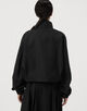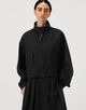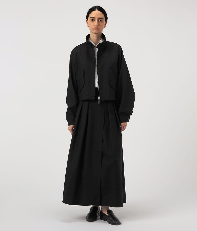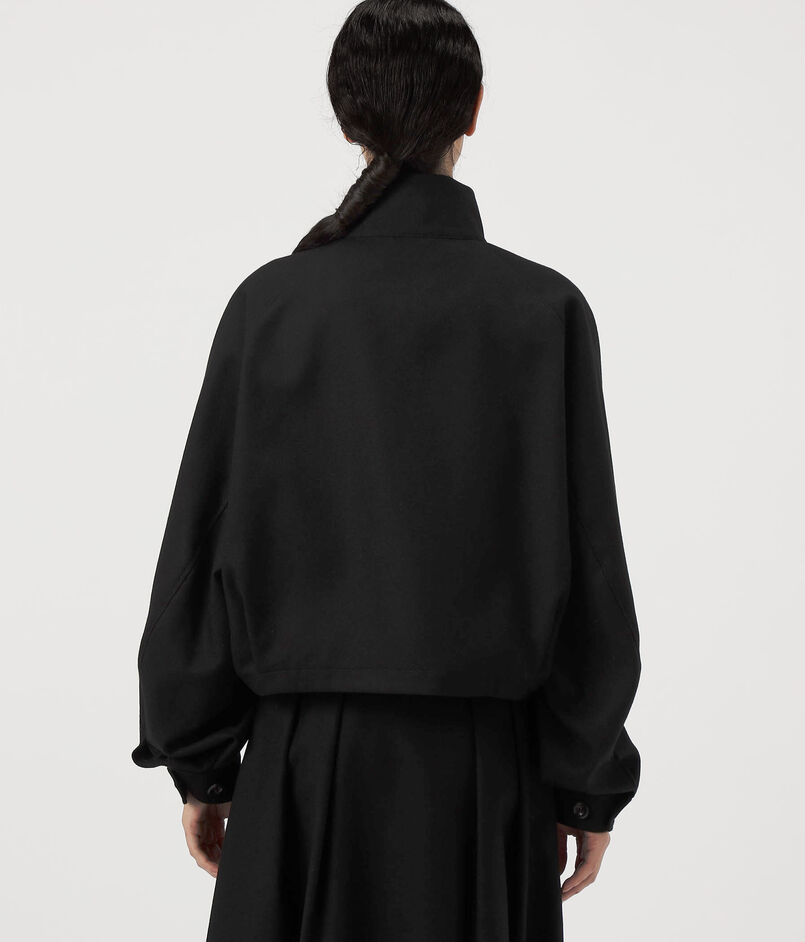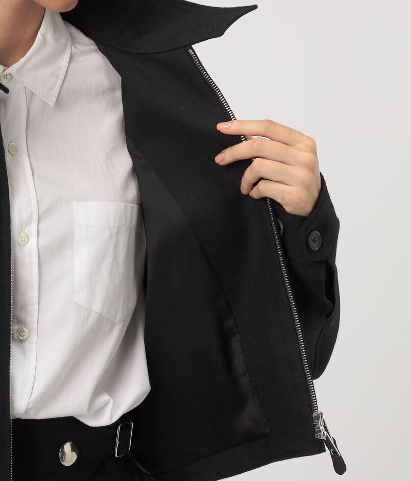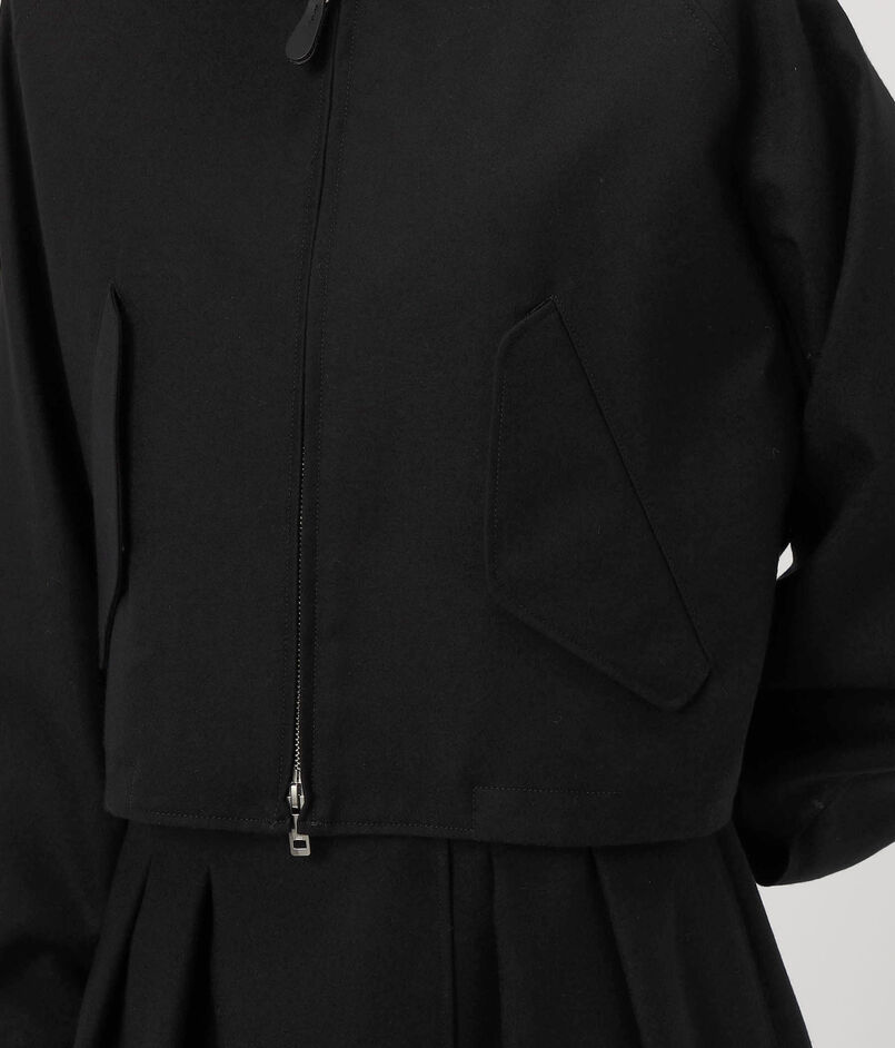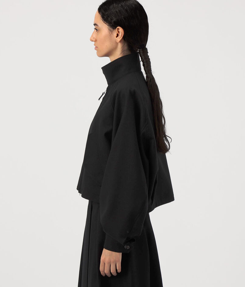 身頃バックサイドのタックが、様々なボトムスと好相性のショート丈に最適な、立体的なバランスを構築しています。