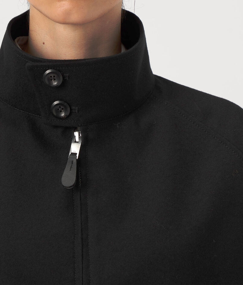 トラディショナルな印象のハリントンジャケットをショート丈にアレンジし女性らしくアップデートした一着を、柔らかなフランネル素材で別注オーダー。