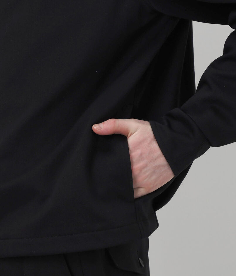 身頃バックサイドのタックが、様々なボトムスと好相性のショート丈に最適な、立体的なバランスを構築しています。