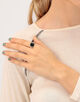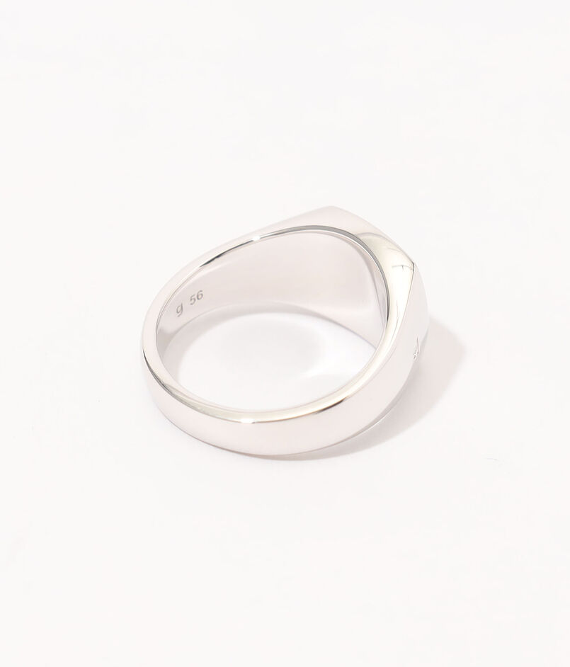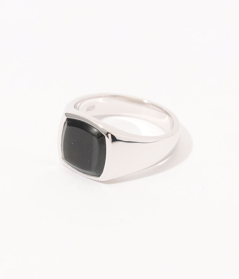 洗練されたベゼルにブルー ホーク アイのカットストーンが映えるクラシックなシグネットリング。