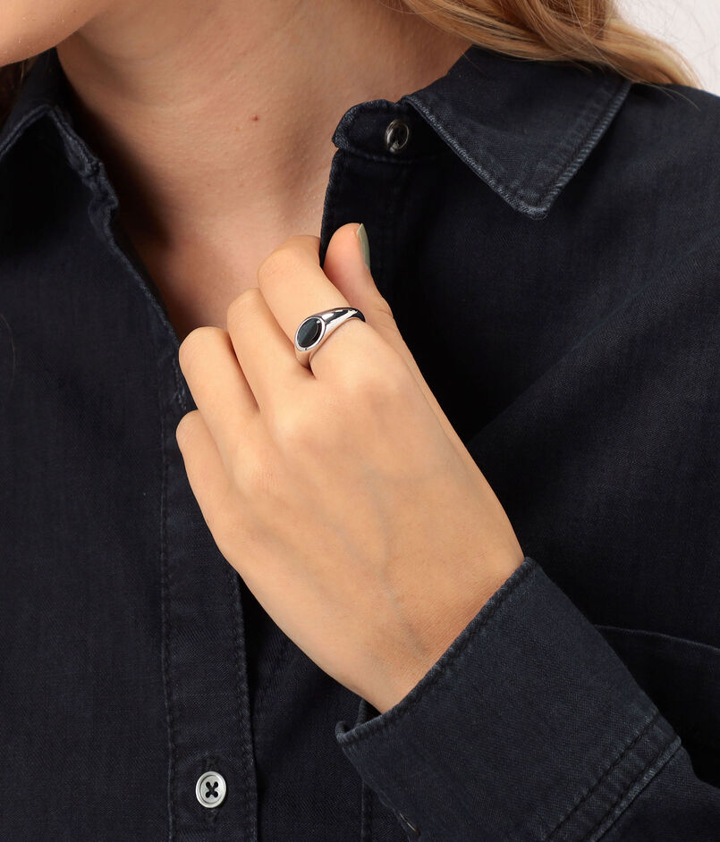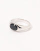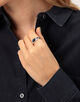 洗練されたベゼルにブルー ホークアイのカットストーンが映えるクラシックなシグネットリング。