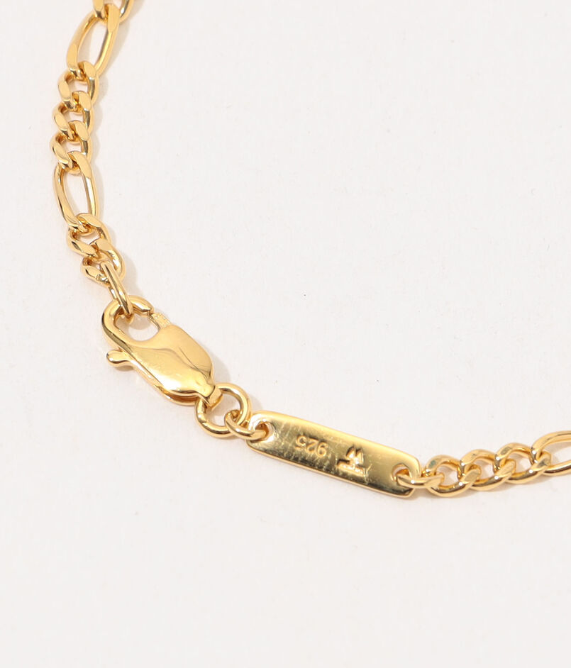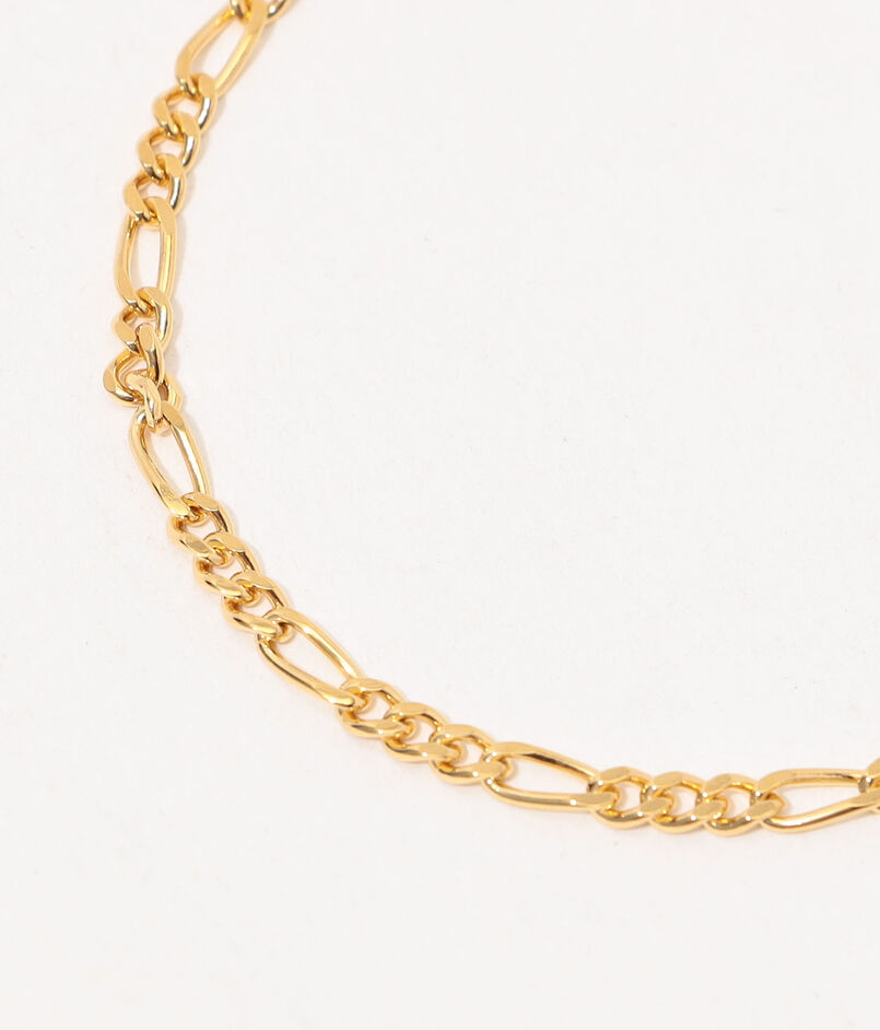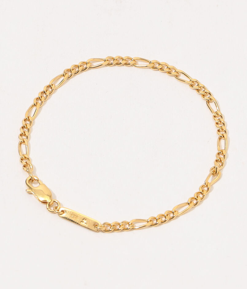 小さな丸いカーブと細長い楕円形のカーブが組み合わされた、ブランドオリジナルのフィガロチェーンを使用したブレスレット。