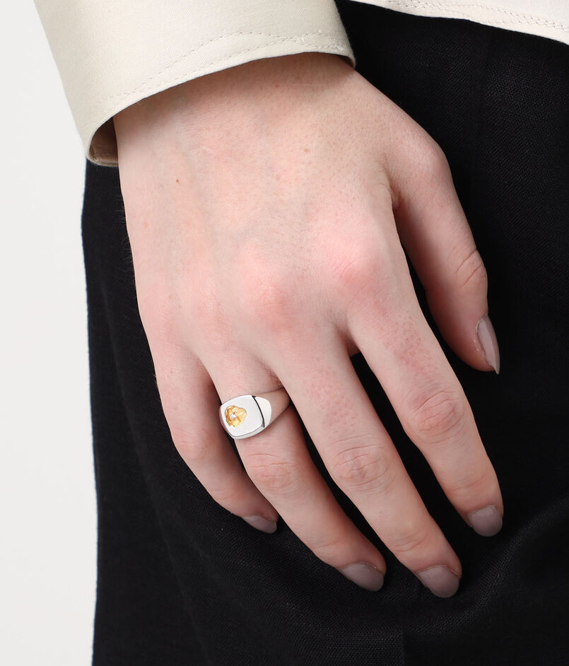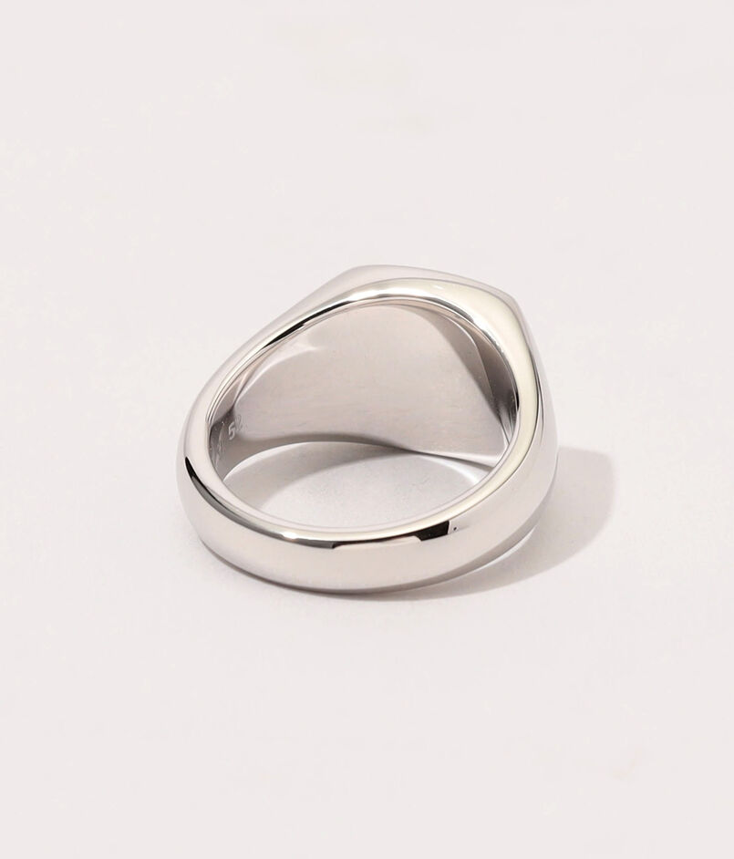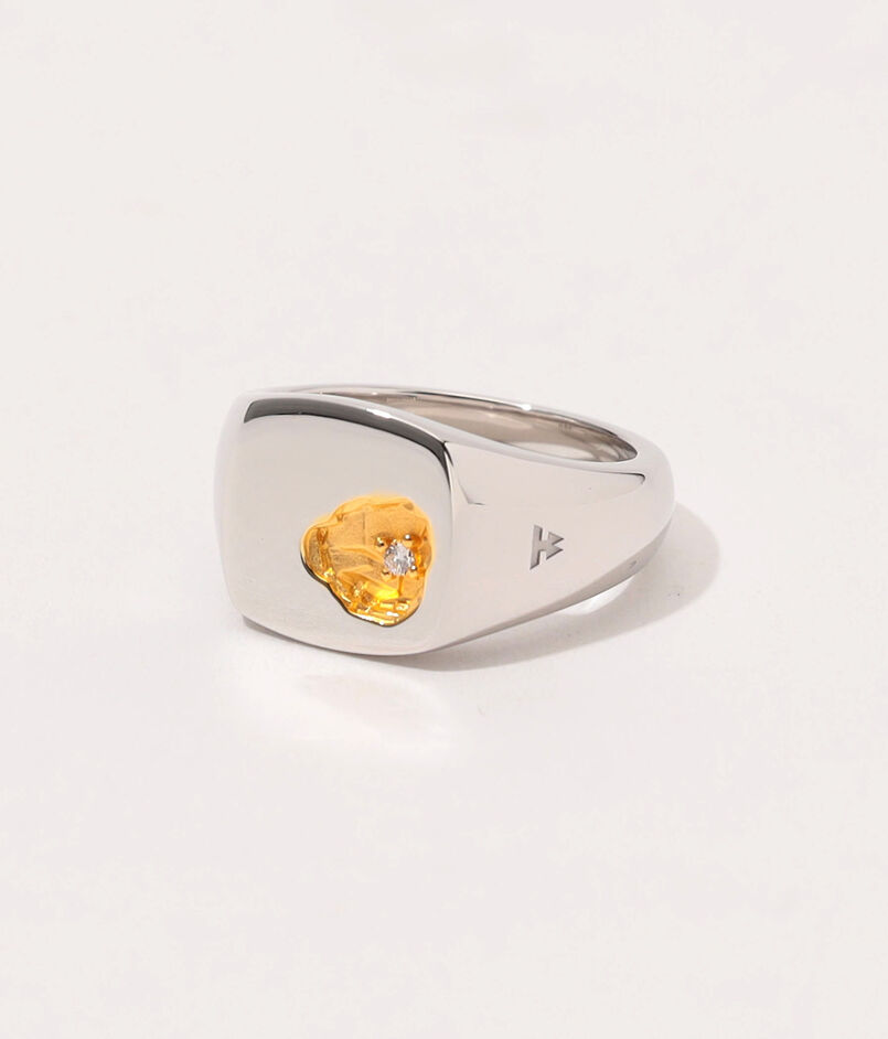 ノルウェーの岩だらけの海岸線と、澄み切った銀色の海から着想を得て、クラシカルなクッションカットのシグネットリングにワイルドな魅力を添えた『The Mined Ring』。