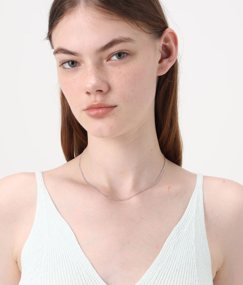素肌を滑るようにしなやかに連なり、他のネックレスとのレイヤードはもちろん、単品でもさりげない存在感を放ちます。