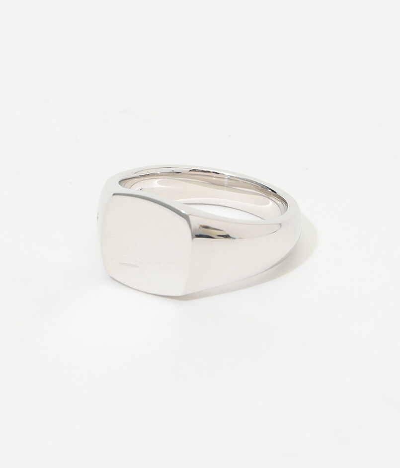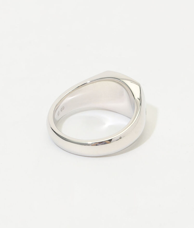 美しいカットエッジと磨かれたシルバーがクリーンな印象の中型シグネットリング。