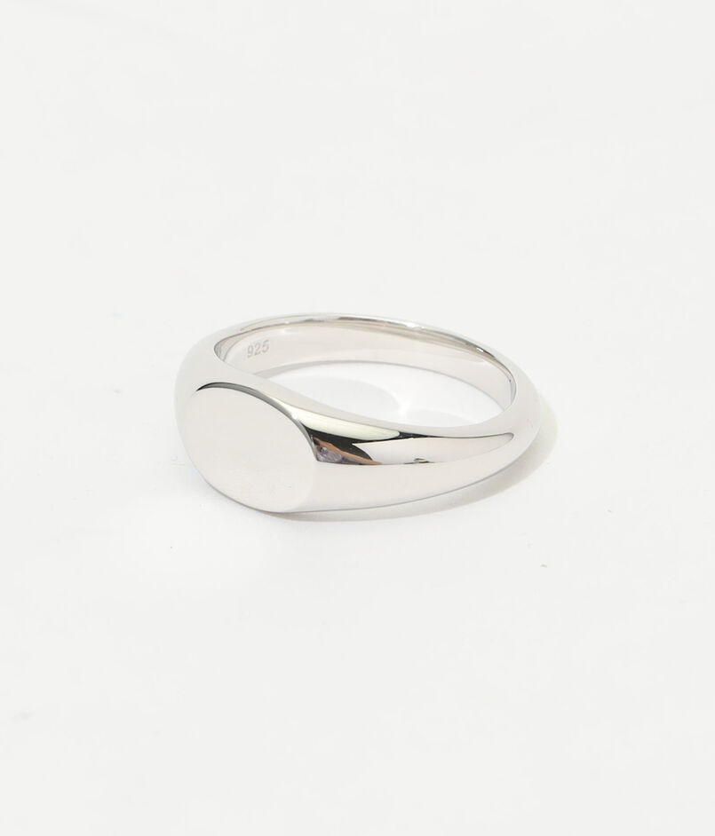 美しく磨かれたシルバーにスリムなオーバル型のトップが映えるデザイン。