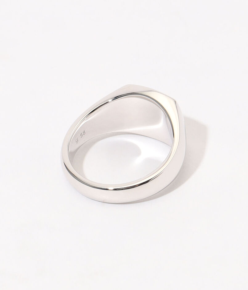 洗練されたベゼルにブルー ホーク アイのカットストーンが映えるクラシックなシグネットリング。