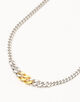 チェーンはポリッシュ仕上げのリサイクル・スターリングシルバー925製で、表面を強化し変色を防ぐために18Kゴールドとホワイトロジウムのリサイクル・プレーティングが施されています。