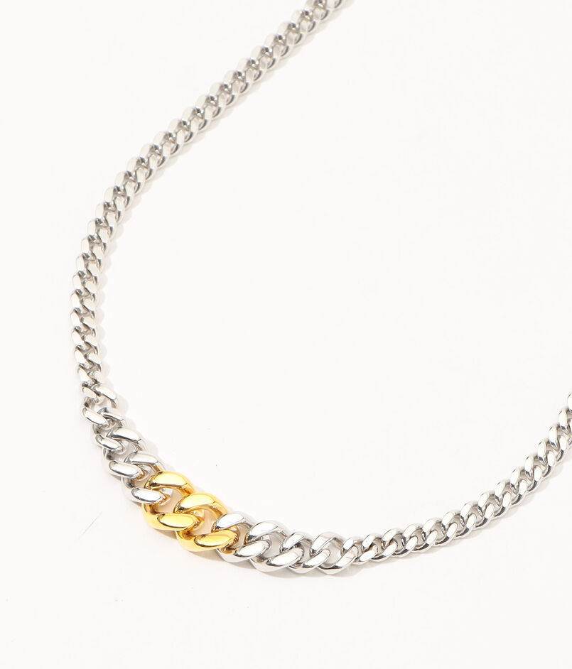 大ぶりのカーブ・チェーンに連なる、個別に鋳造・はんだ付けされた10個のリンクが、オリジナルのデザインにさらなる表情をプラスするネックレス。
