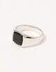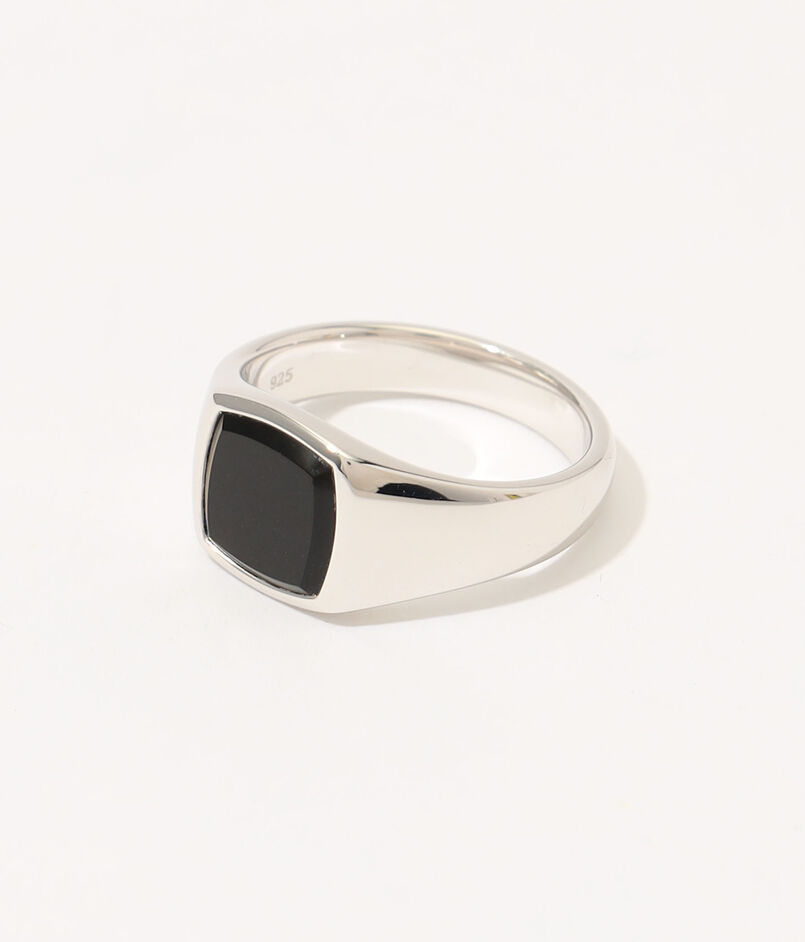 カスタムカットのポリッシュ・ブラックオニキスが、磨き上げられたシルバー上のベゼルにあしらわれています。