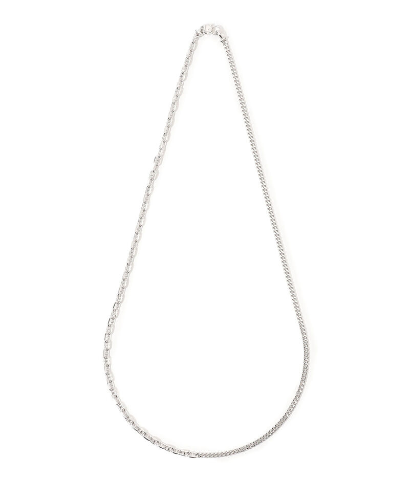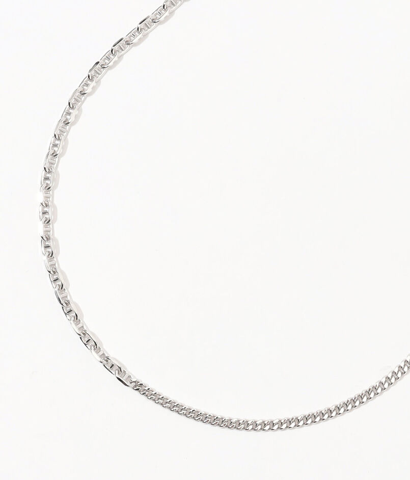 このチェーンはポリッシュ仕上げのリサイクル・スターリングシルバー925製で、表面を強化し変色を防ぐためにホワイトロジウムプレーティングが施されています。