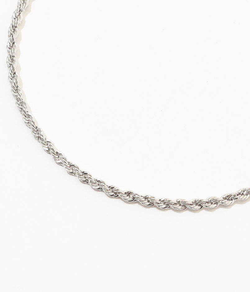 密に編み込まれたリンクが特徴的な「ロープチェーン」。その構造が豊かなテクスチャーと立体感をプラスし、首元に確かな存在感を放ちます。