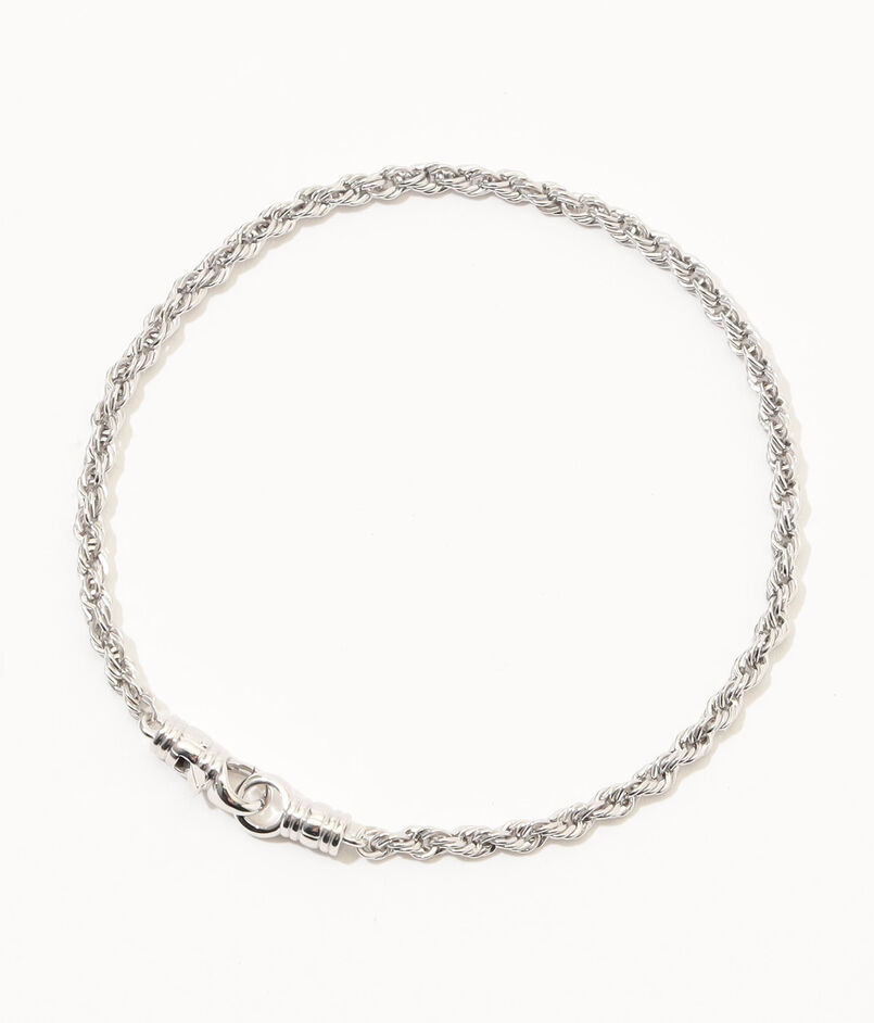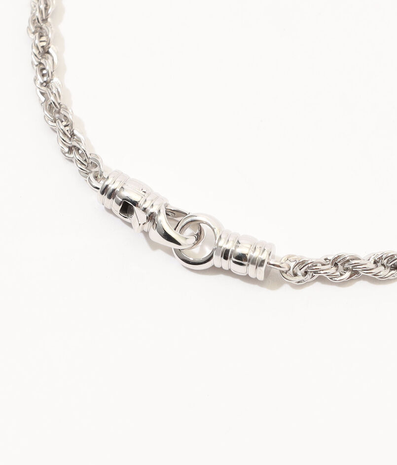 密に編み込まれたリンクが特徴的な「ロープブレスレット」。その構造が豊かなテクスチャーと立体感をプラスし、手首に確かな存在感を放ちます。