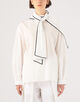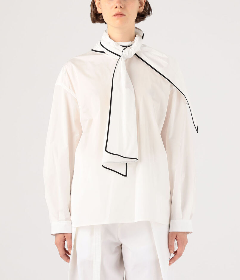 ブランド定番のエターナルブラウスは、ボウタイ端はモノトーン配色でモダンに仕上げました。