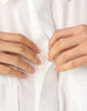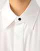 第一ボタンのみ貝ボタンを黒く染色したボタンを使用しデザインポイントに。