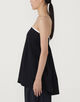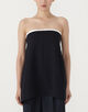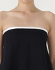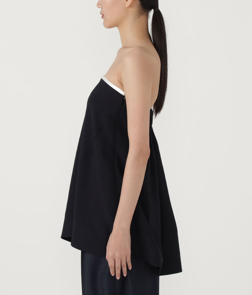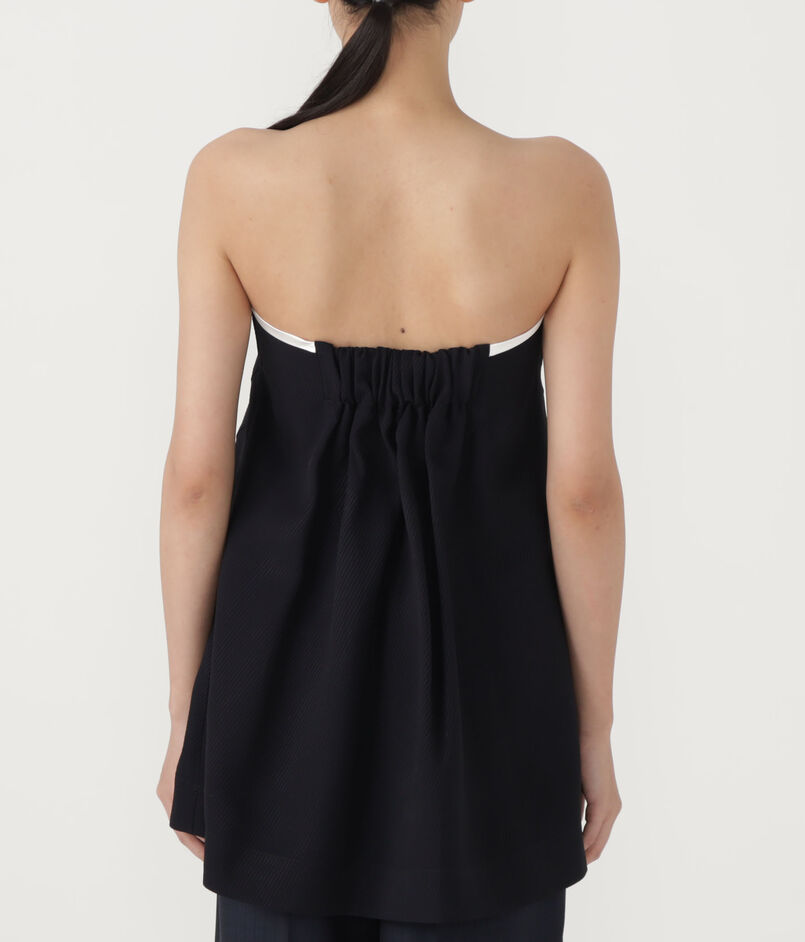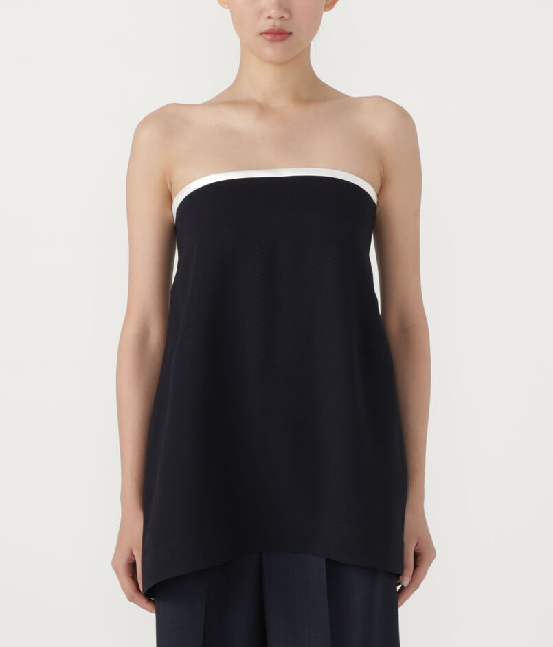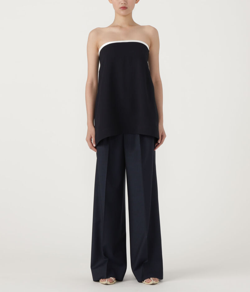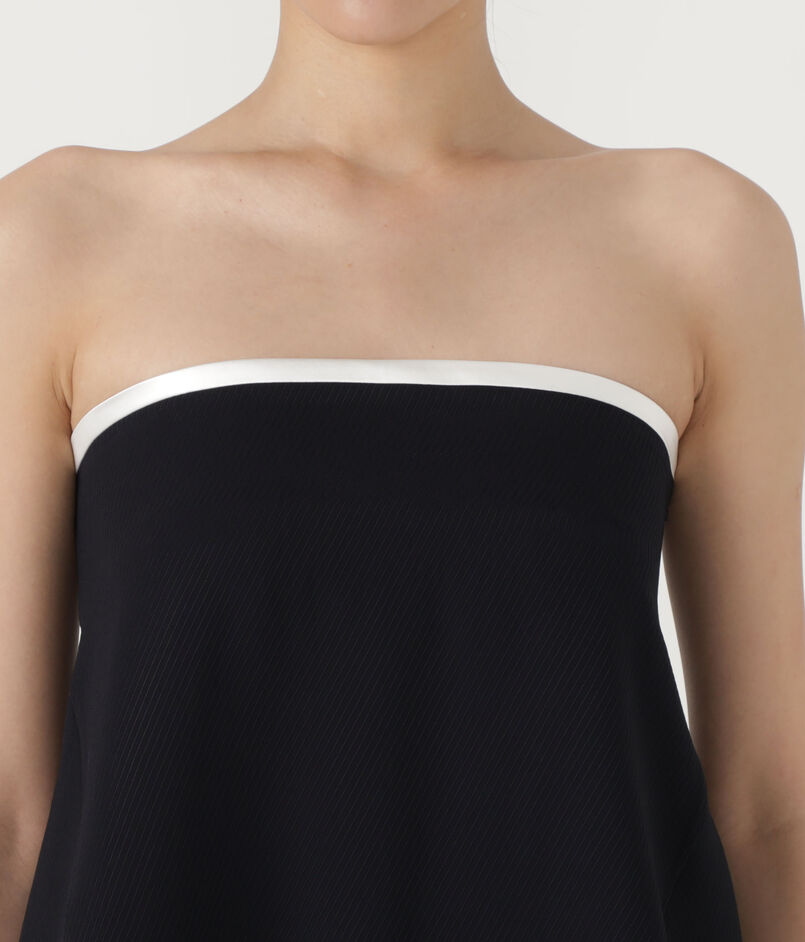 上端のトリミング配色が効いたベアトップは、素材の落ち感が美しく一枚でさらりと着ていただけます。