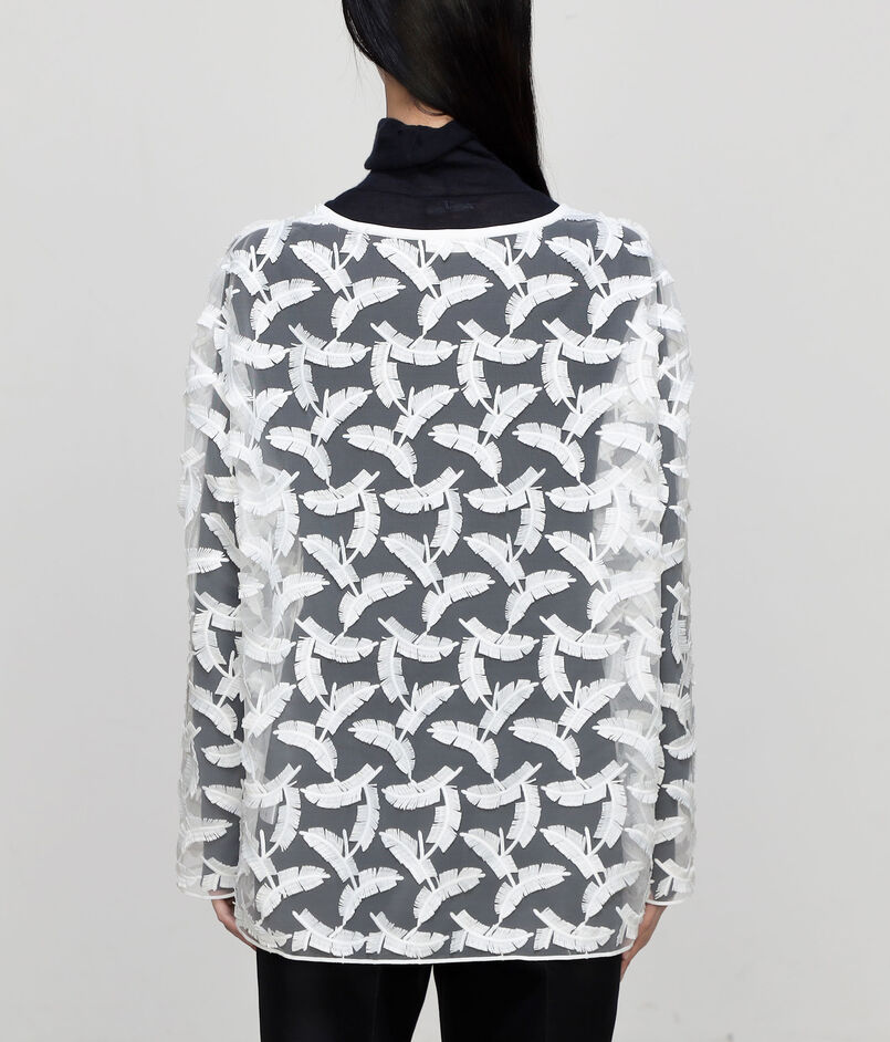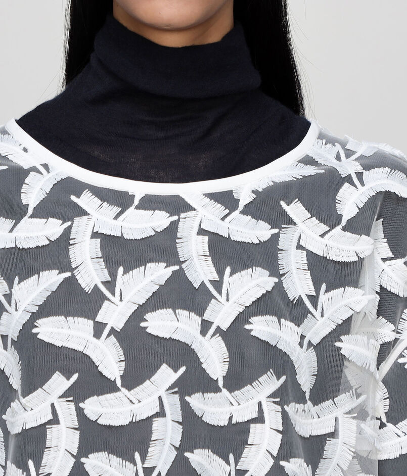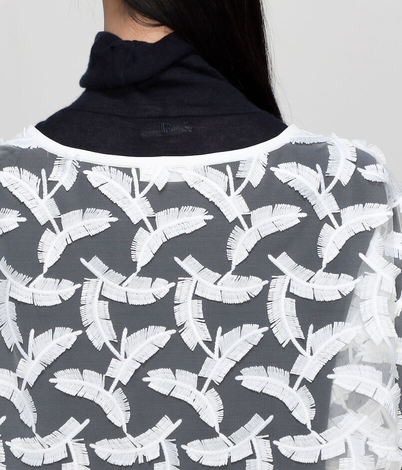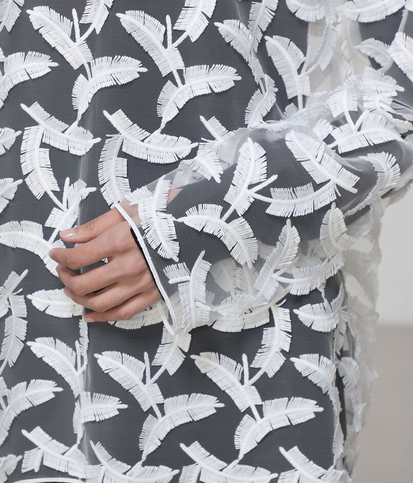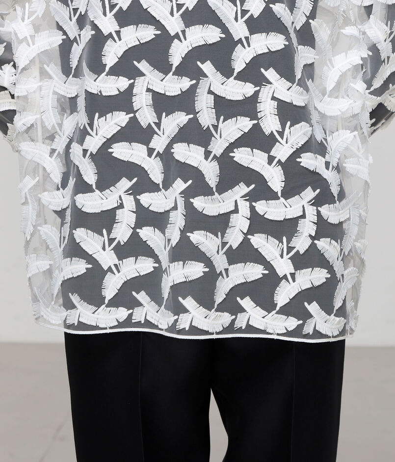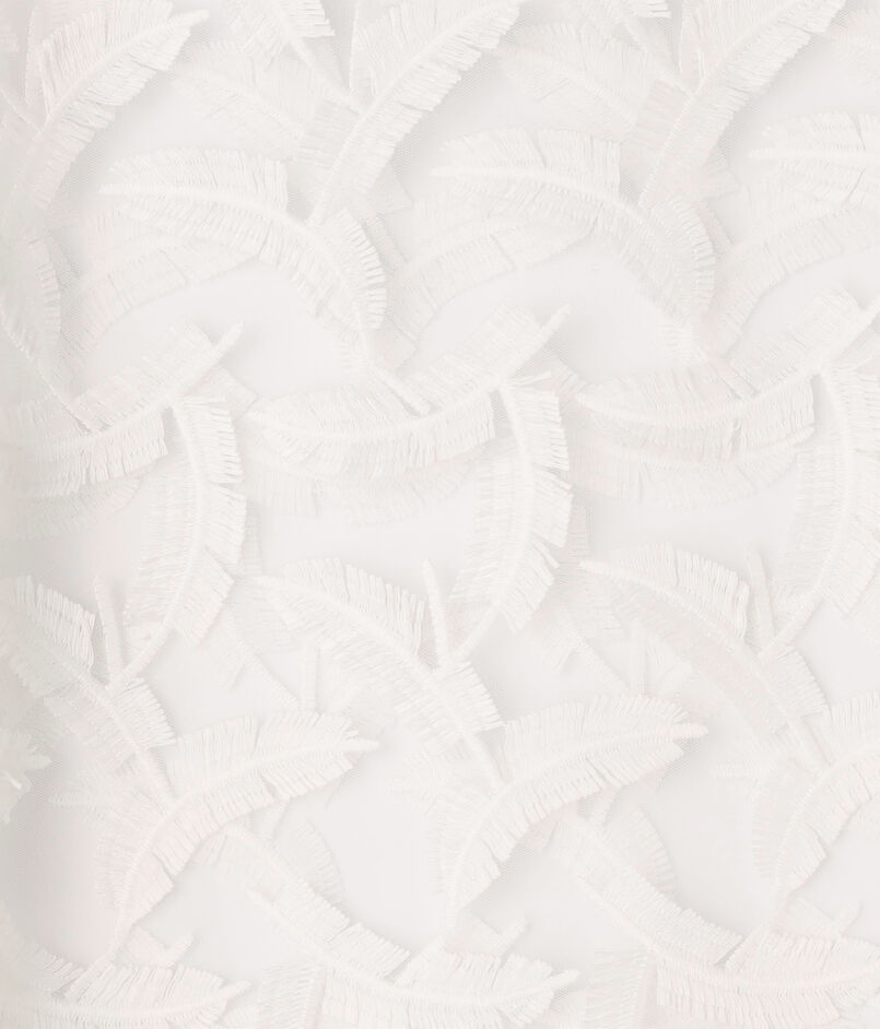 繊細な極細ポリエステルチュールグランドの上に羽のモチーフを施したエンブロイダリーシリーズ。