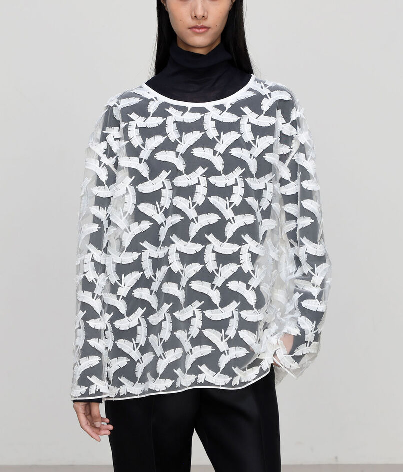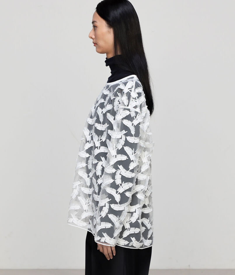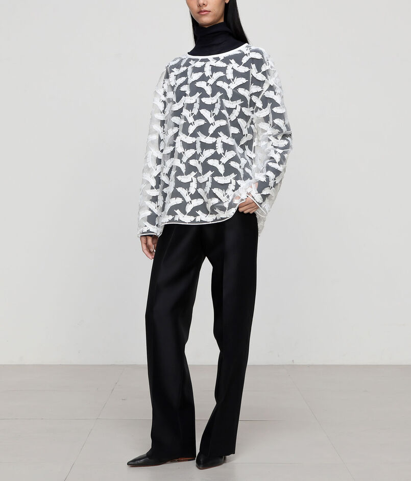 シアー感を活かしたクルーネックプルオーバーブラウス。