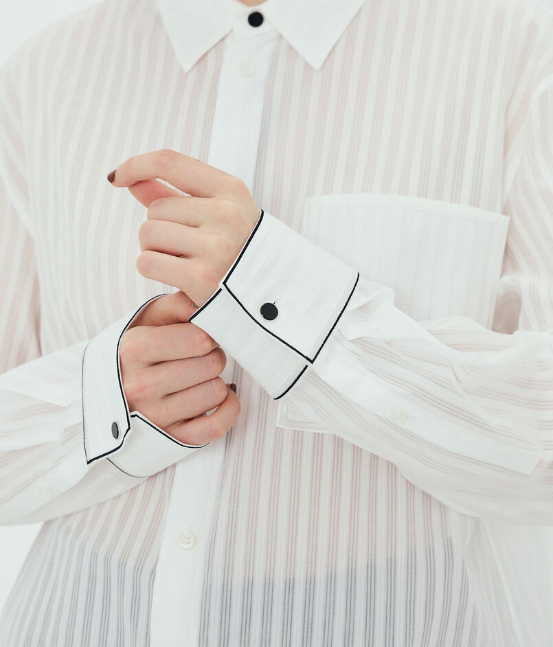 イタリアBORGHI社の細番手で繊細な透け感のあるコットンストライプ生地を使用したシリーズ。