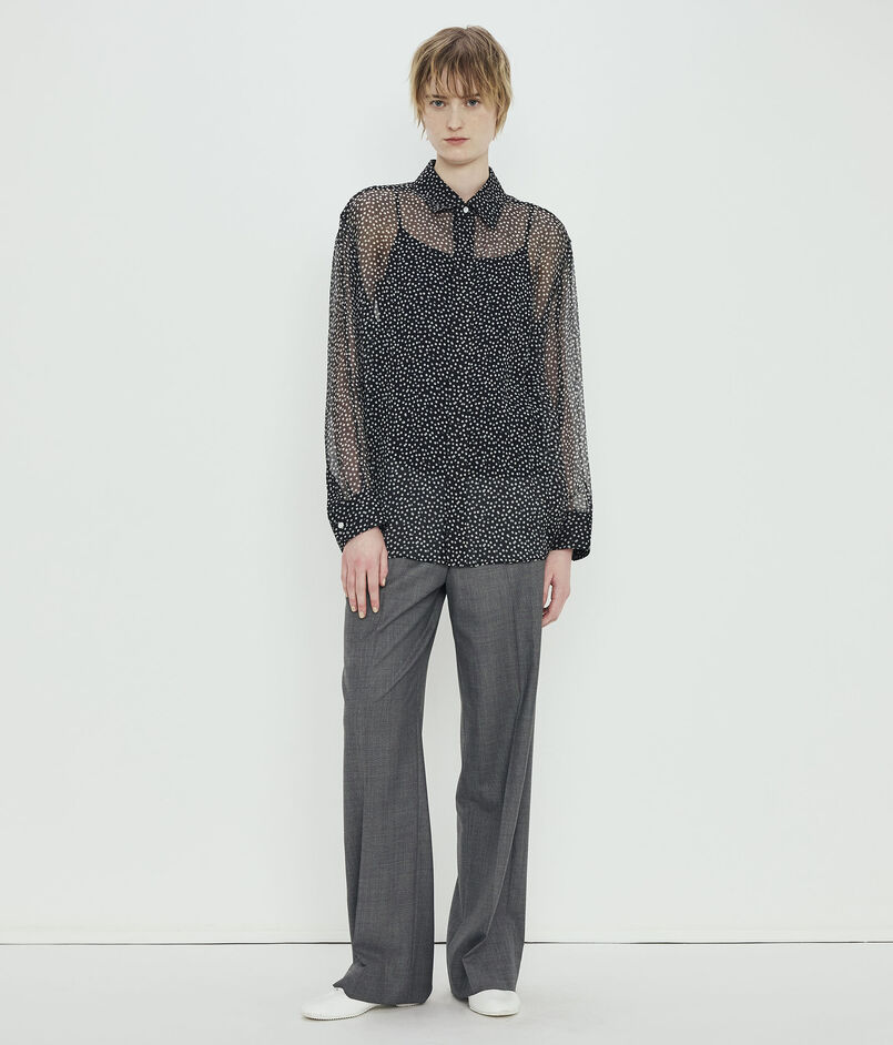 ゆるやかなシルエットで仕立てたシンプルで上品なレギュラーカラーシャツ。