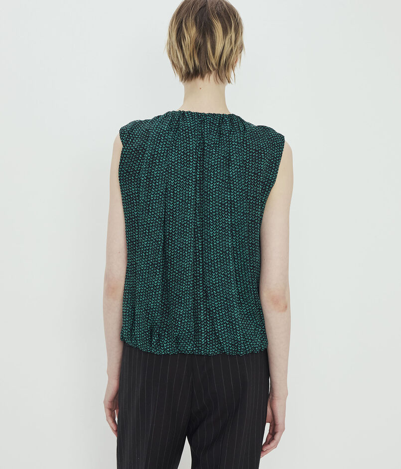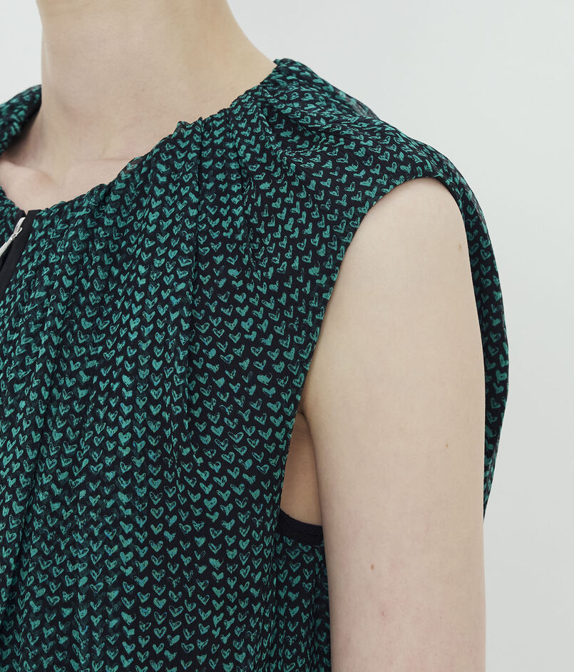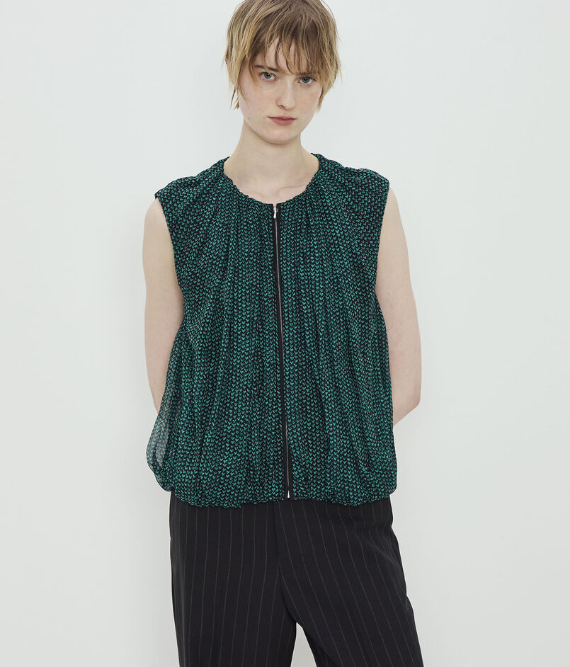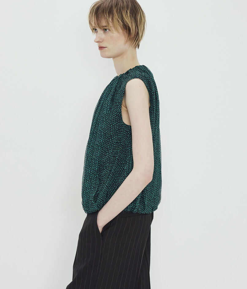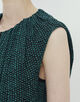 贅沢にギャザーを取り入れたノースリーブブラウス。