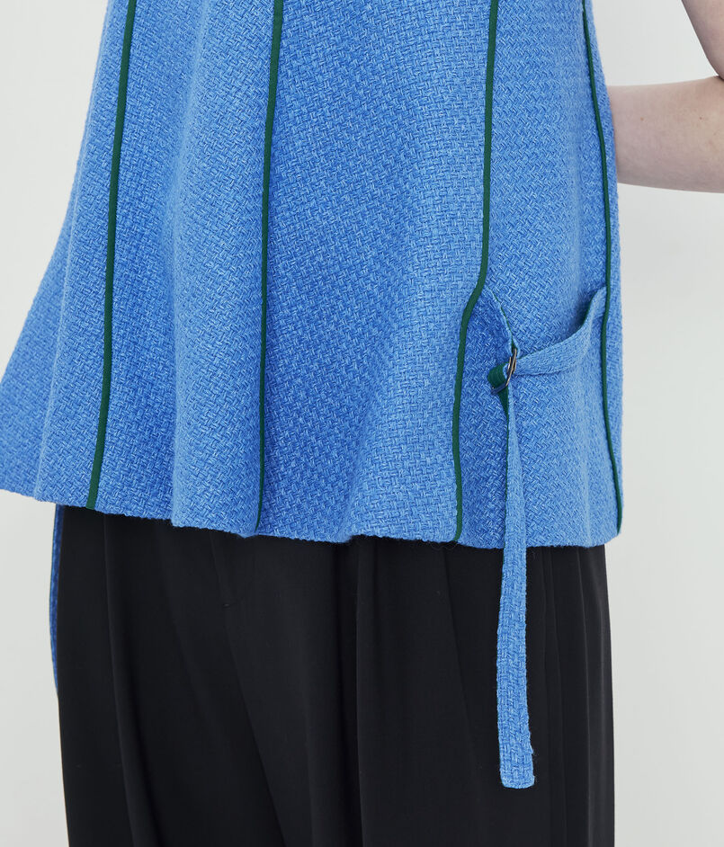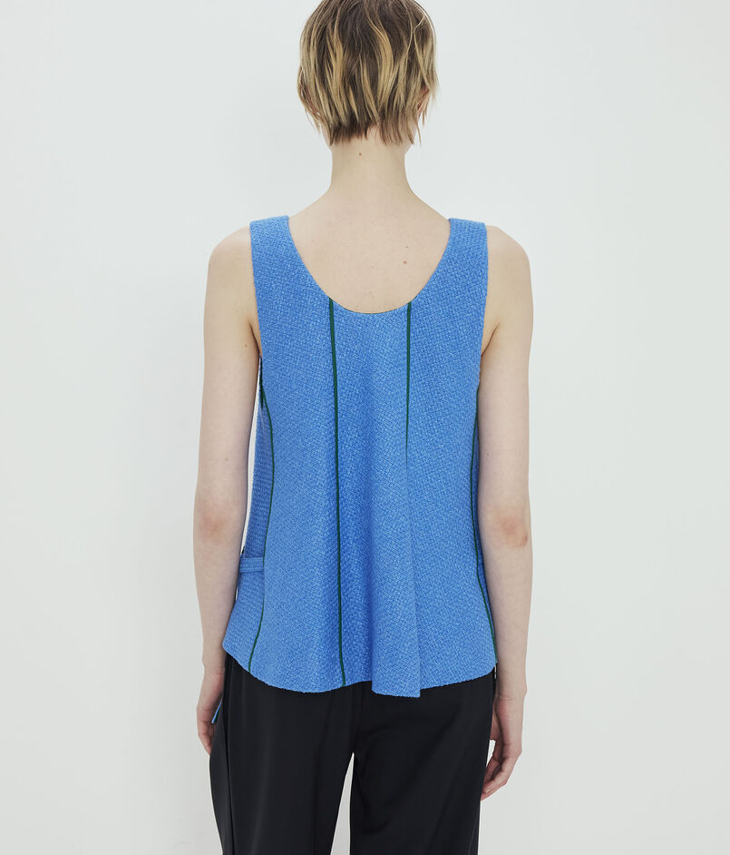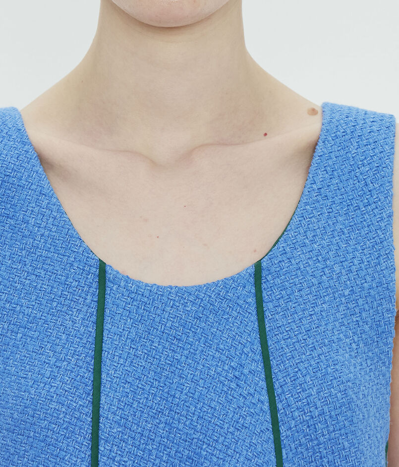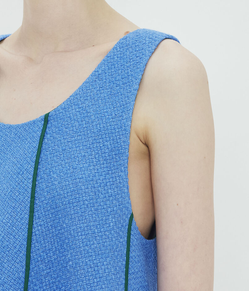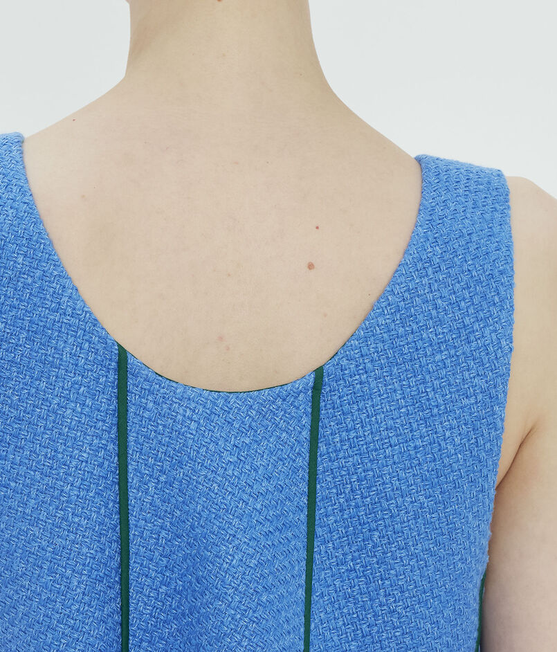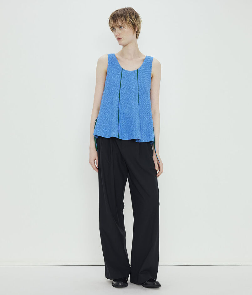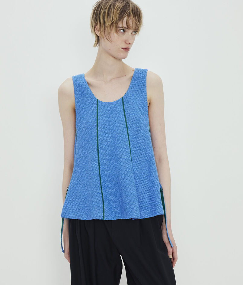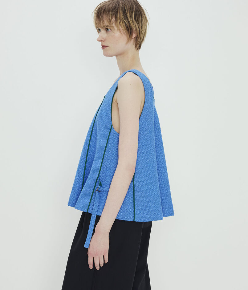 裾に向かって自然なフレアラインを描くノースリーブトップです。