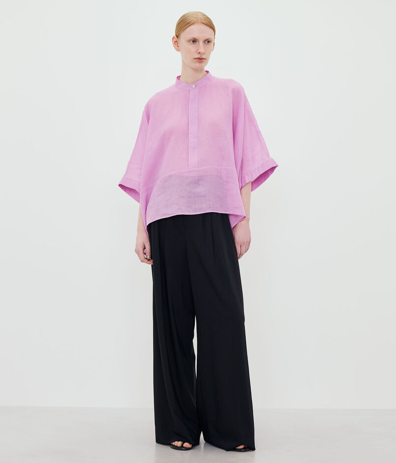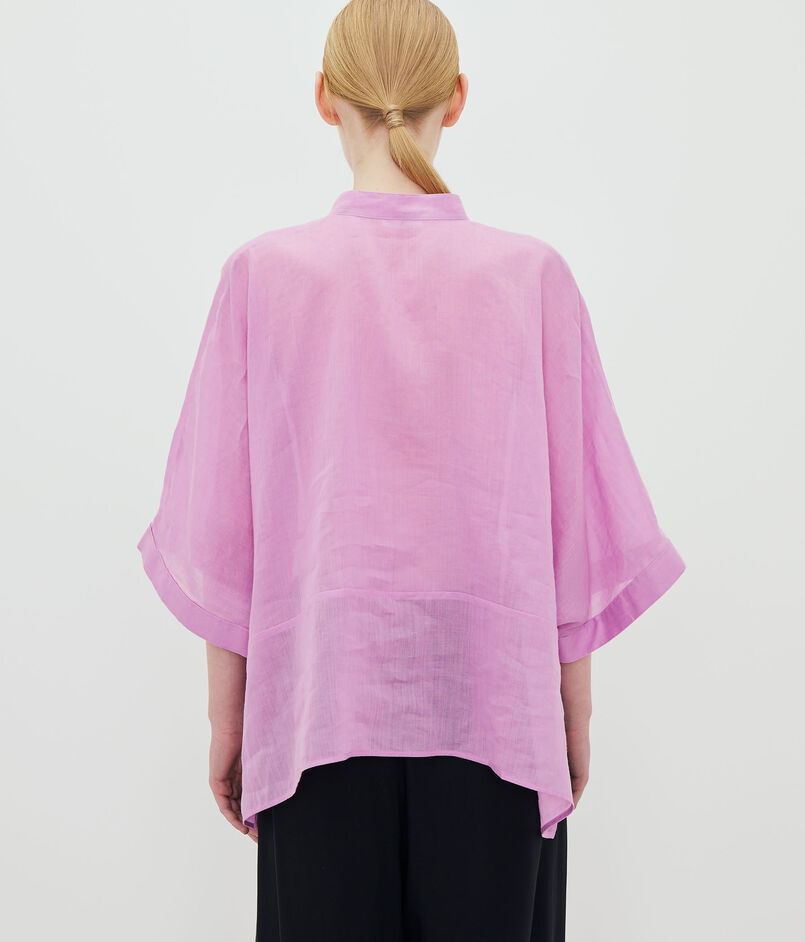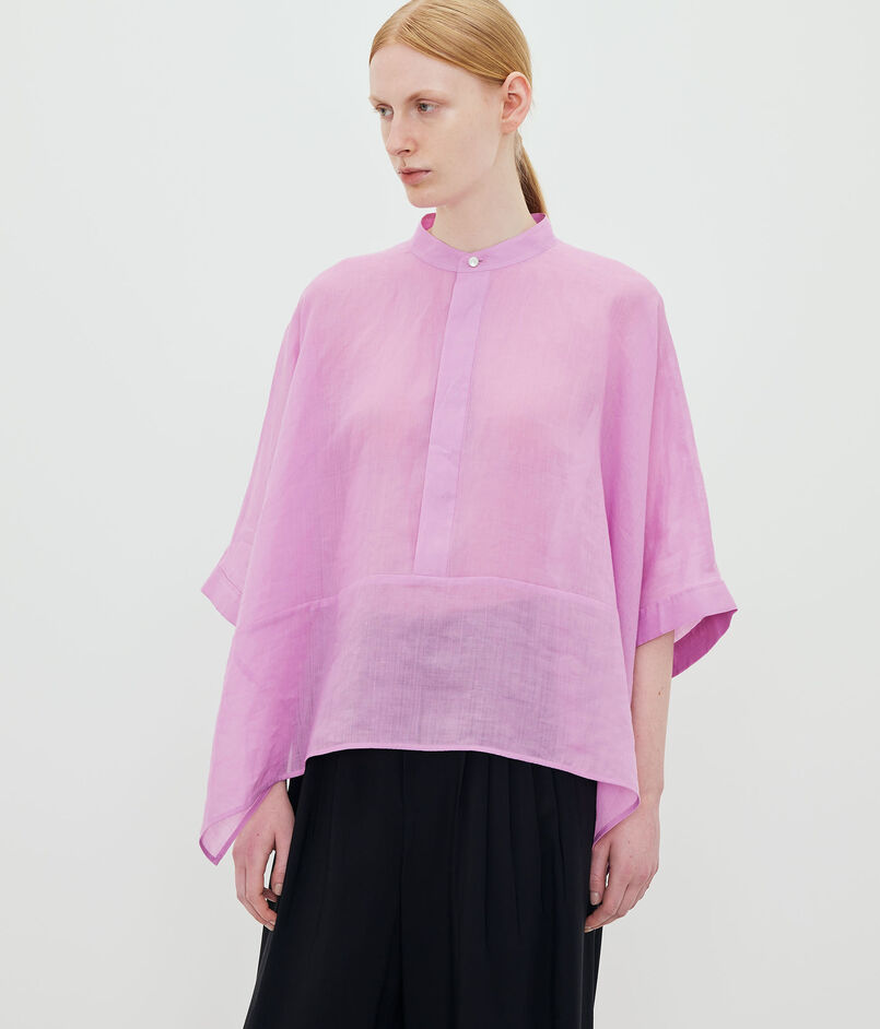 ポンチョ型のオーバーブラウスは、揺れ動くシルエットが美しい分量感の一枚です。